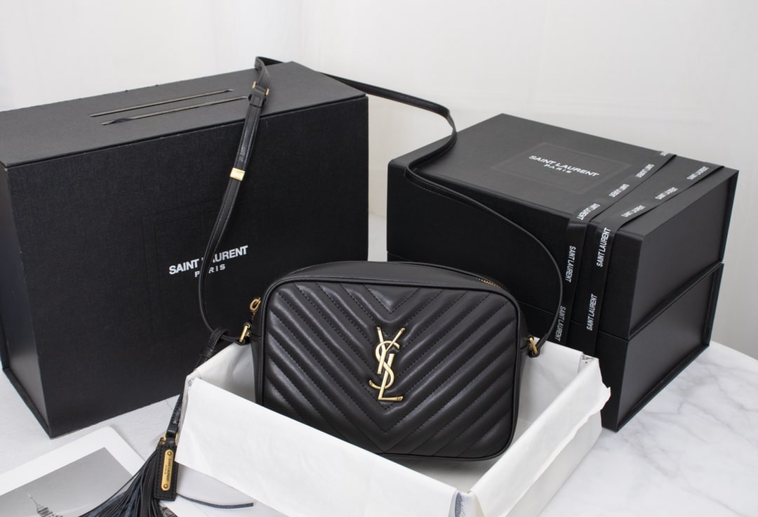 Saint Laurent Lou Camera Bag In Quilted Black Gold Leather 23Cm