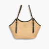 Chanel Medium Shopping Bag Braided Raffia And Gold Tone Metal In Beige Black 30Cm