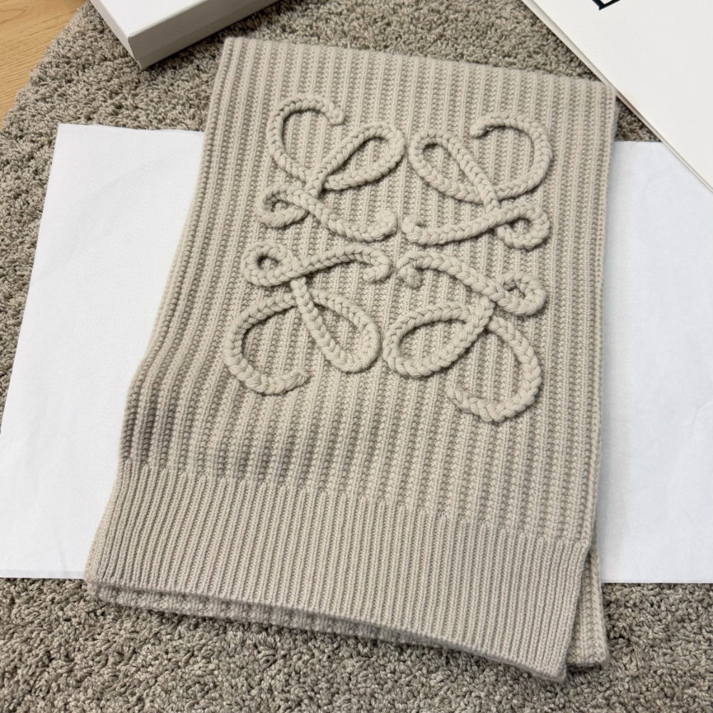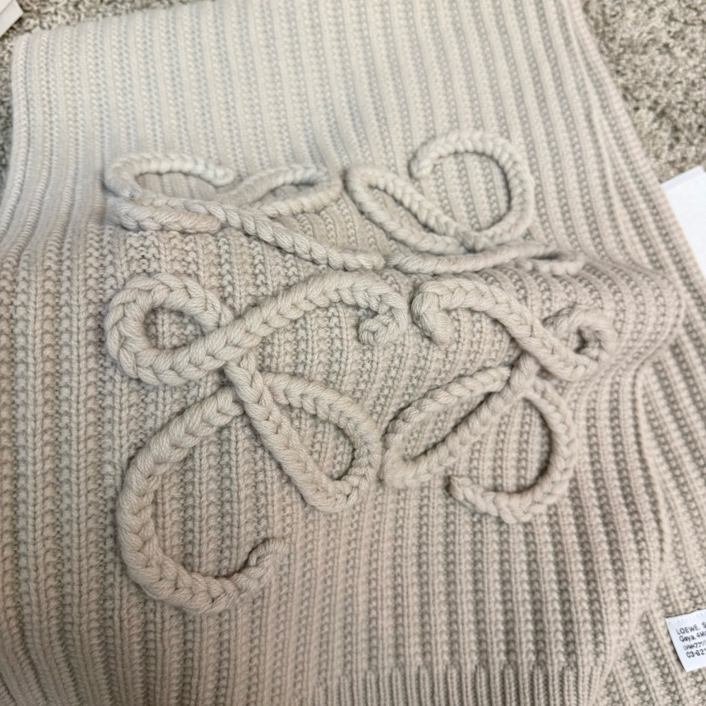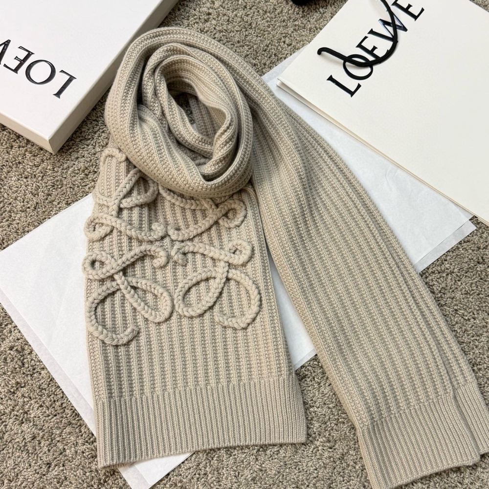Loewe Anagram Embroidered Ribbed Wool Scarf Beige / 70.9 x 11.8 inches / Wool / Casual Scarf