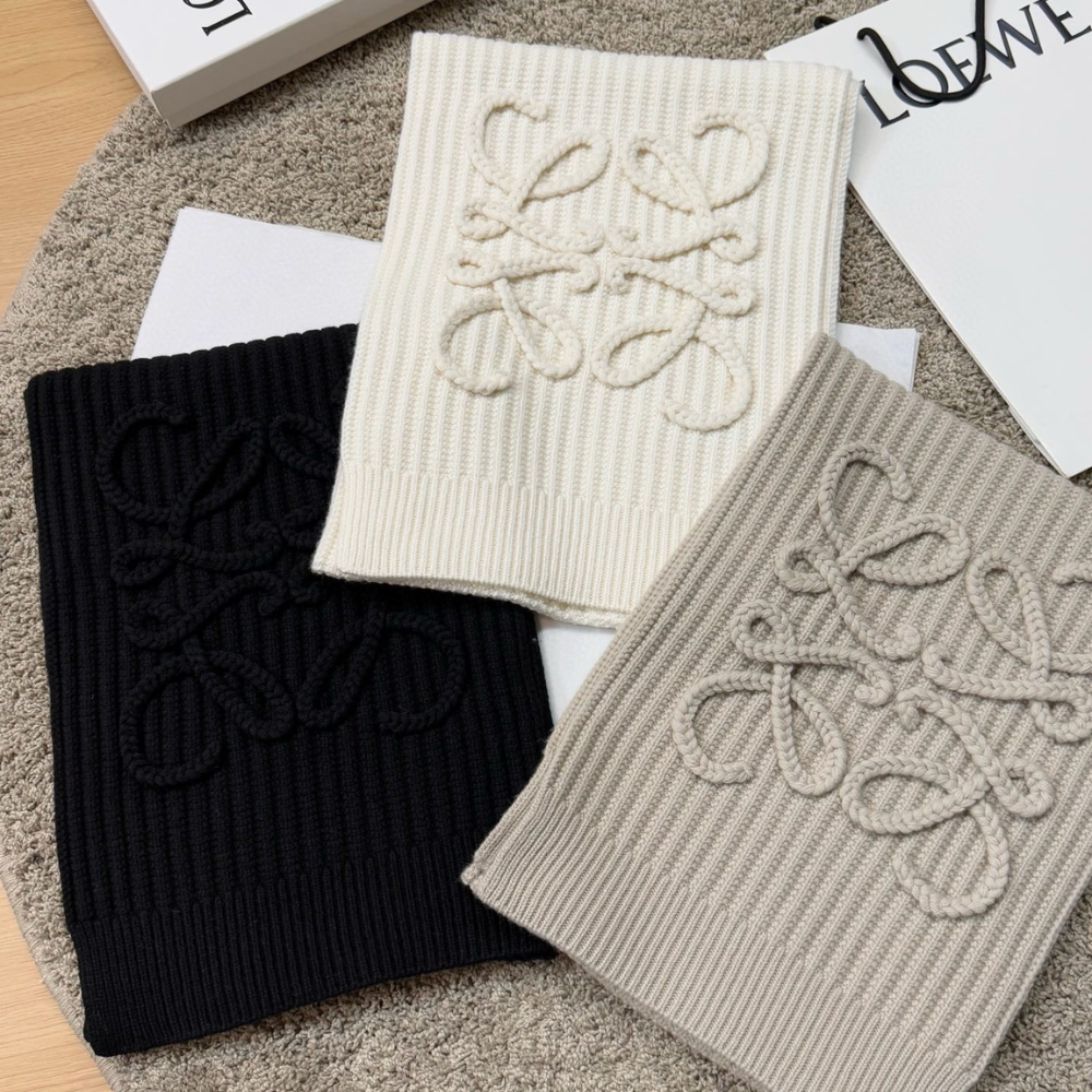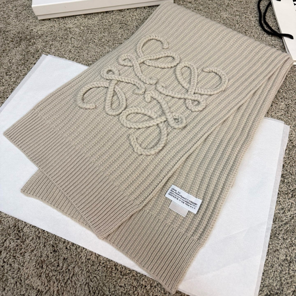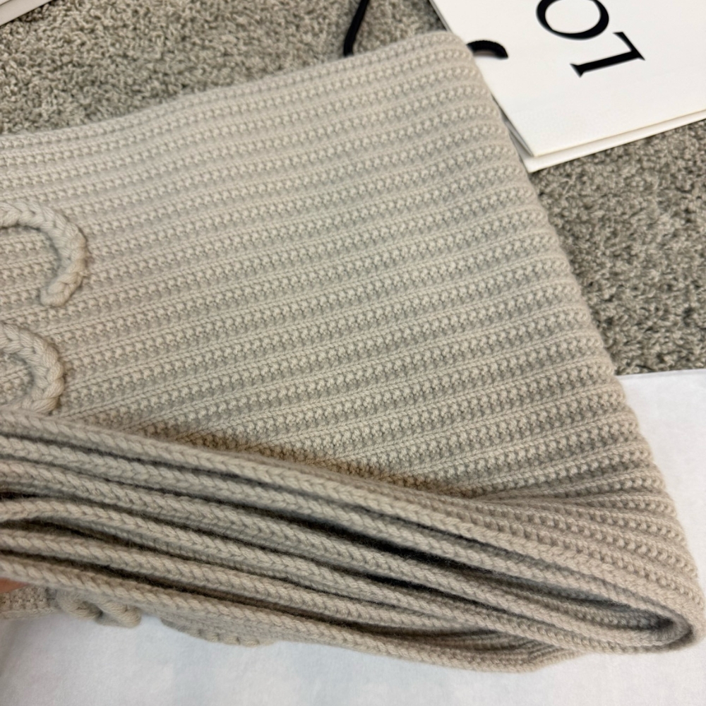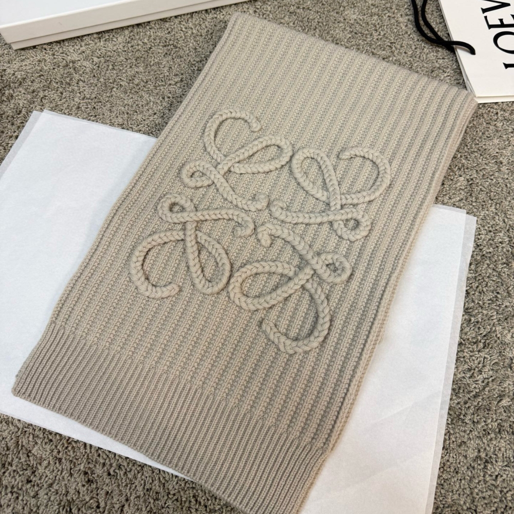 Loewe Anagram Embroidered Ribbed Wool Scarf Beige / 70.9 x 11.8 inches / Wool / Casual Scarf