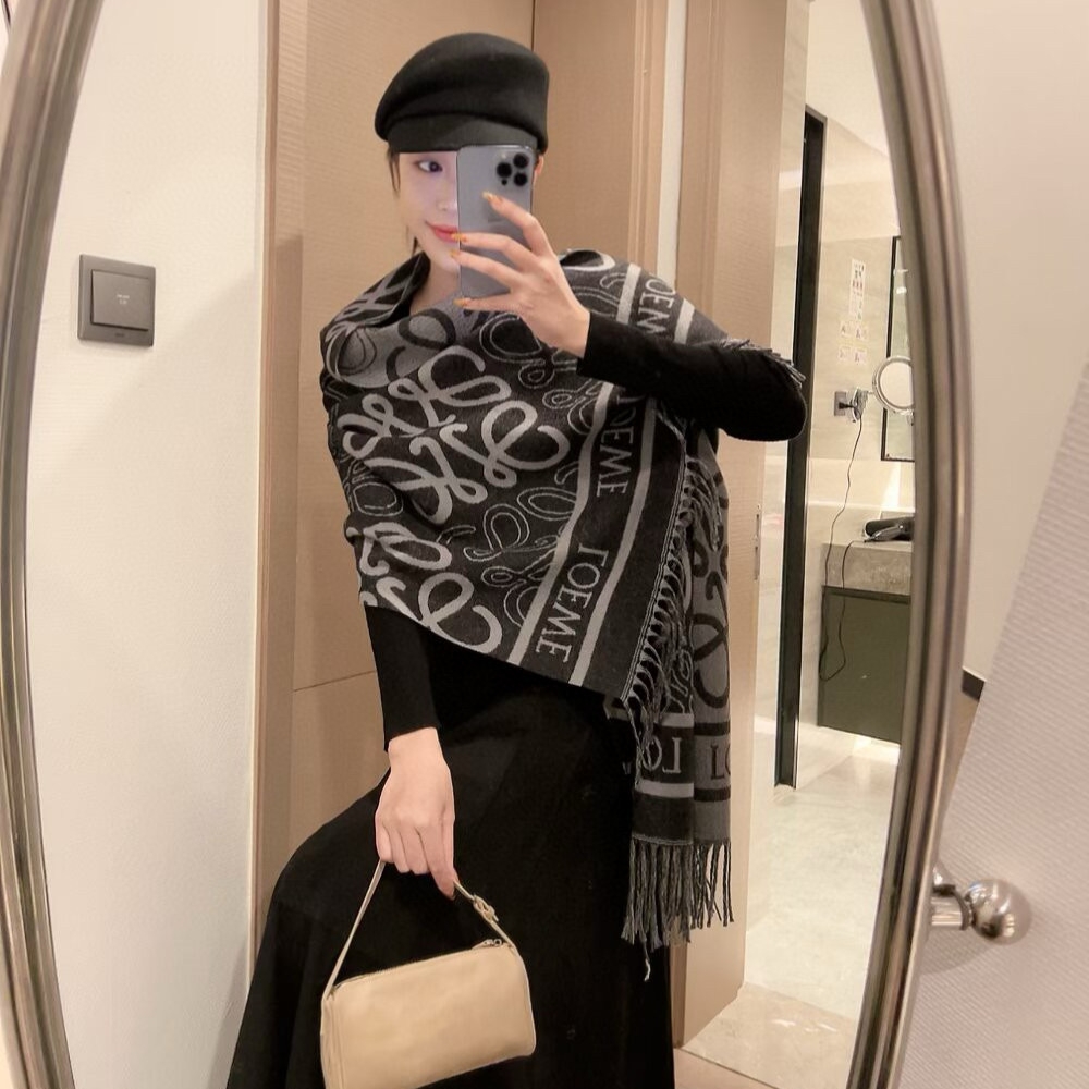 Loewe Anagram Scarf Black / 70.9 x 19.7 inches / Wool And Cashmere / Casual Scarf