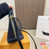The Louis Vuitton Alma BB in black denim is a modern take on a classic silhouette, featuring monogram-embossed denim for a sophisticated, textured look. This compact bag is accented with tonal leather trim and polished gold-tone hardware, including the iconic padlock and double-zip closure. It offers versatile carrying options with dual top handles and a detachable leather strap for effortless shoulder or crossbody wear. This sleek, monochromatic piece is the perfect transition accessory, blending urban style with timeless Parisian elegance for any occasion.