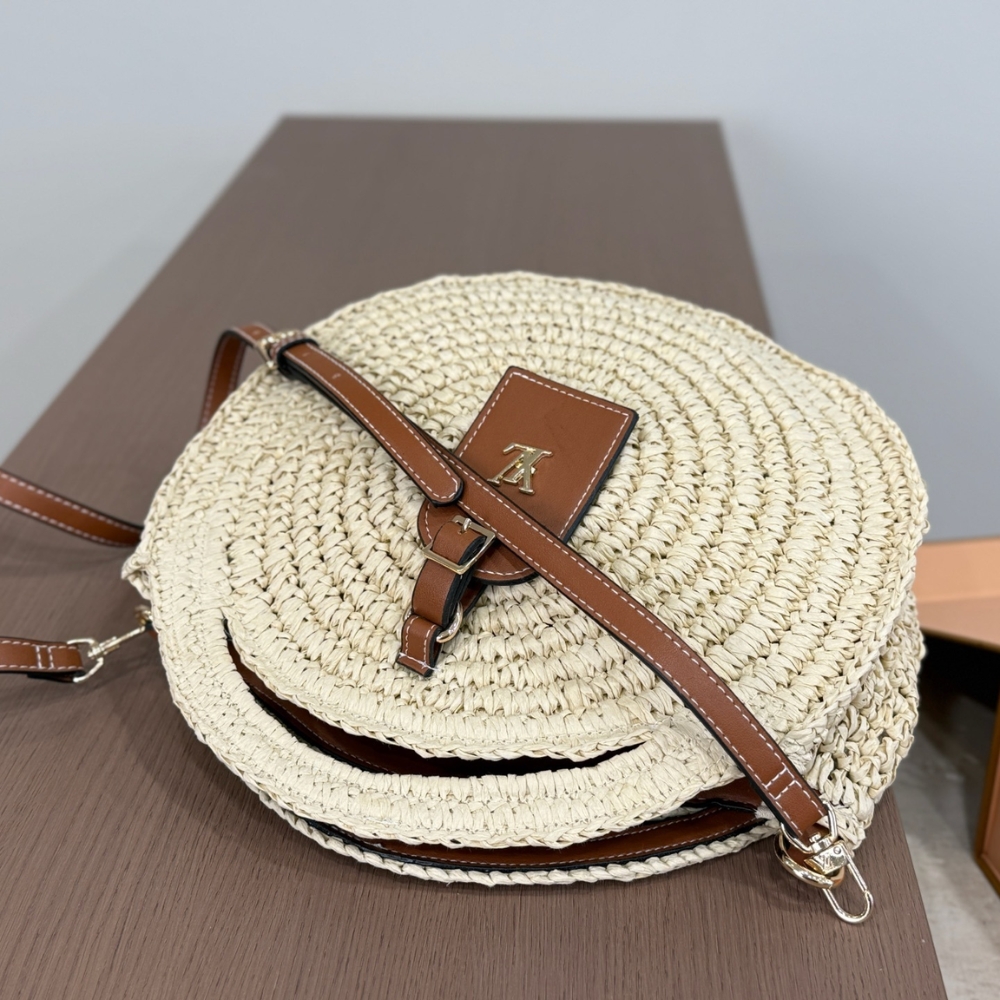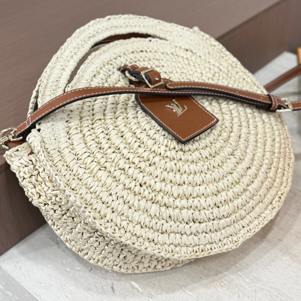 Replica 1:1 – Louis Vuitton Around Me Shoulder Bag Raffia White 28Cm