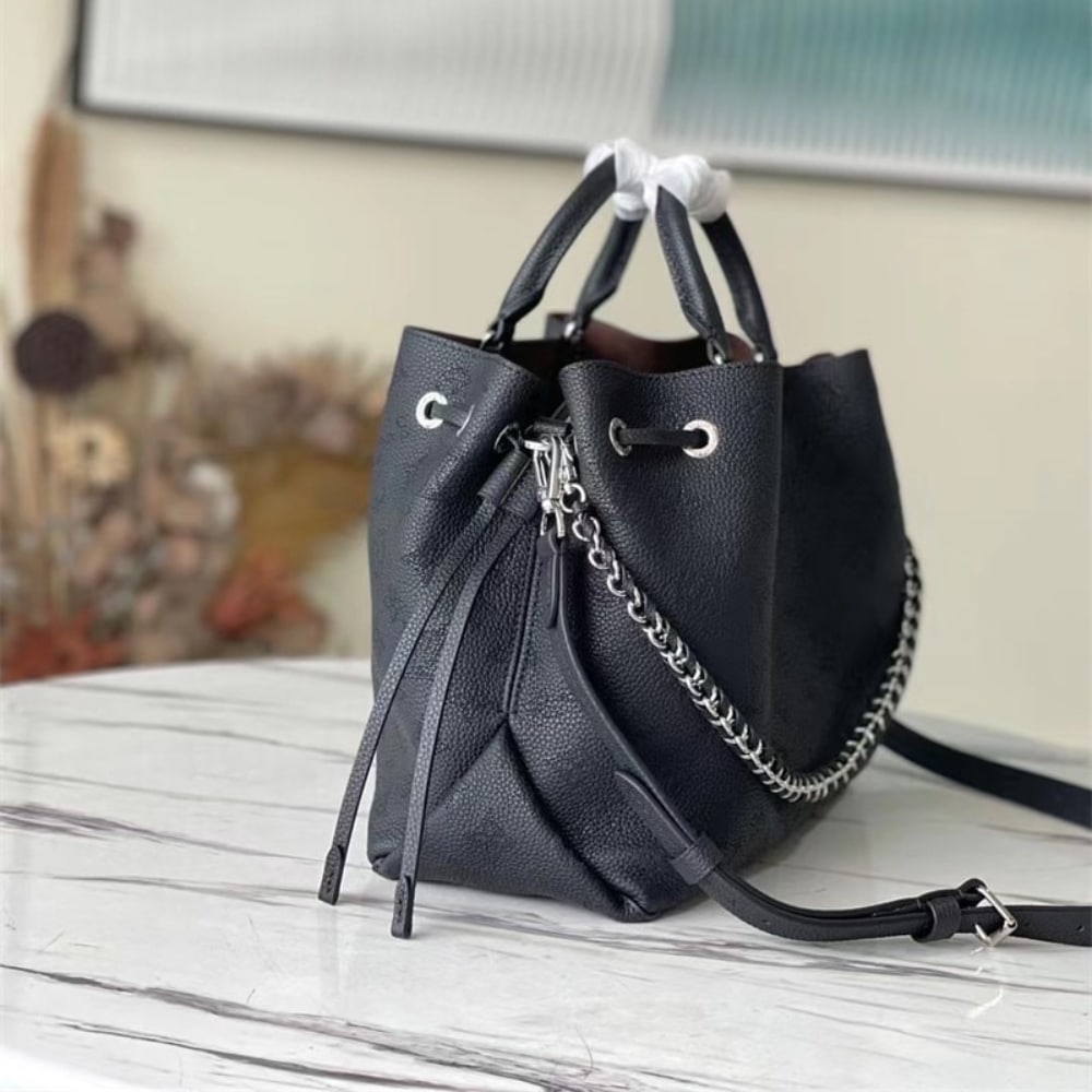 - Leather drawtring to secure belongings