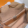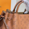 The Louis Vuitton Bella Tote in Mahina Arizona Brown leather is a sophisticated blend of elegance and functionality. It features the signature Monogram pattern, a braided leather and chain handle, and refined silver-tone hardware. Its spacious interior and structured silhouette make it perfect for both daily wear and special occasions.