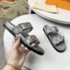 The Bom Dia flat comfort mule is reinterpreted in Monogram Empreinte leather in a two-tone palette that highlights the embossed Monogram pattern. This relaxed, easy-to-wear style features two adjustable straps: one with velcro, the other with a buckle and eyelets in gold-toned metal. A comfortable anatomic insole and lightweight rubber outsole complete this design.