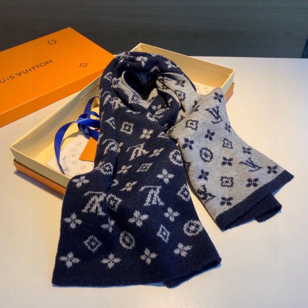 LOUIS VUITTON CACHECOL MONOGRAM DENIM SCARF DARK GREY