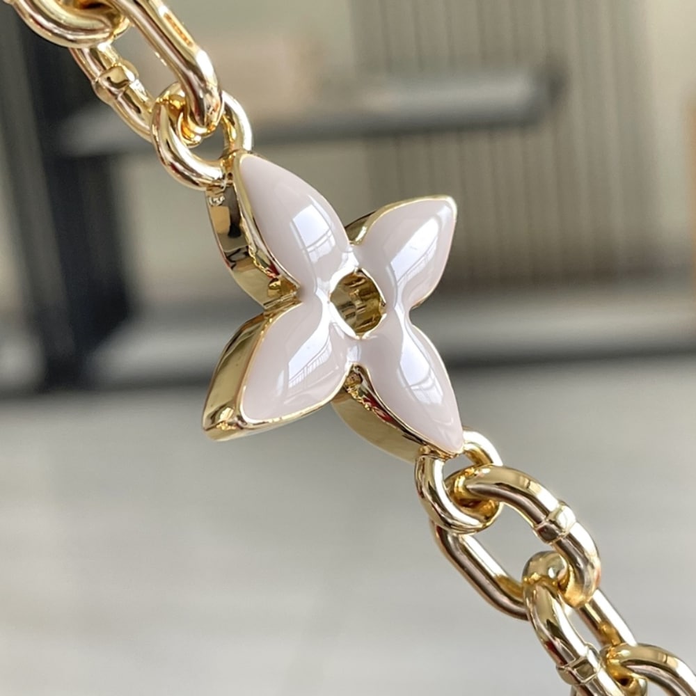 As feminine as it is sophisticated, this Capucines BB handbag in leather features a removable chain adorned with Monogram Blossoms inlaid with enamel. The pale colorway, with different colors on the top handle, flap, and body, make this bag unique. In addition to the chain and top handle, there’s a removable shoulder strap.