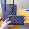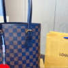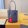 Louis Vuitton/26cm Damier Marais Bucket Tote Bag Navy Blue And Brown N42240
