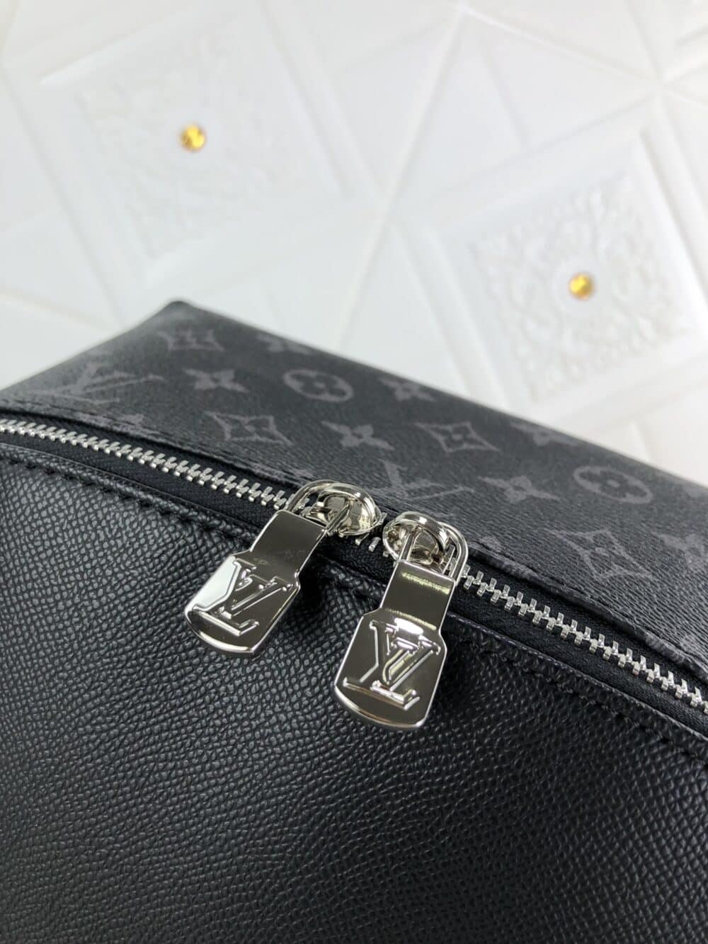 - Taiga cowhide leather and Monogram Eclipse coated canvas