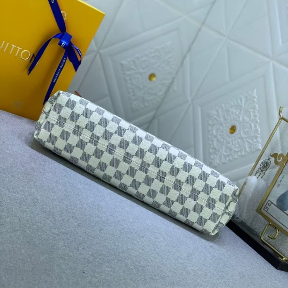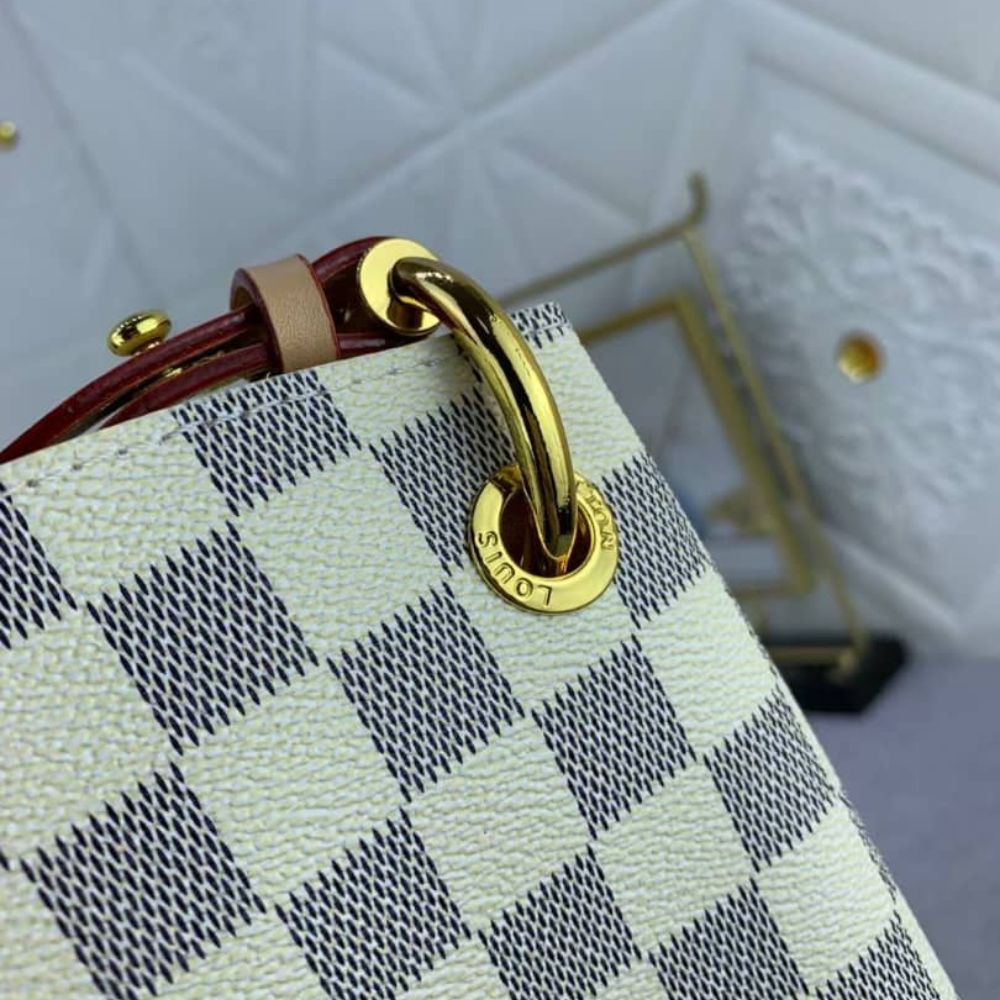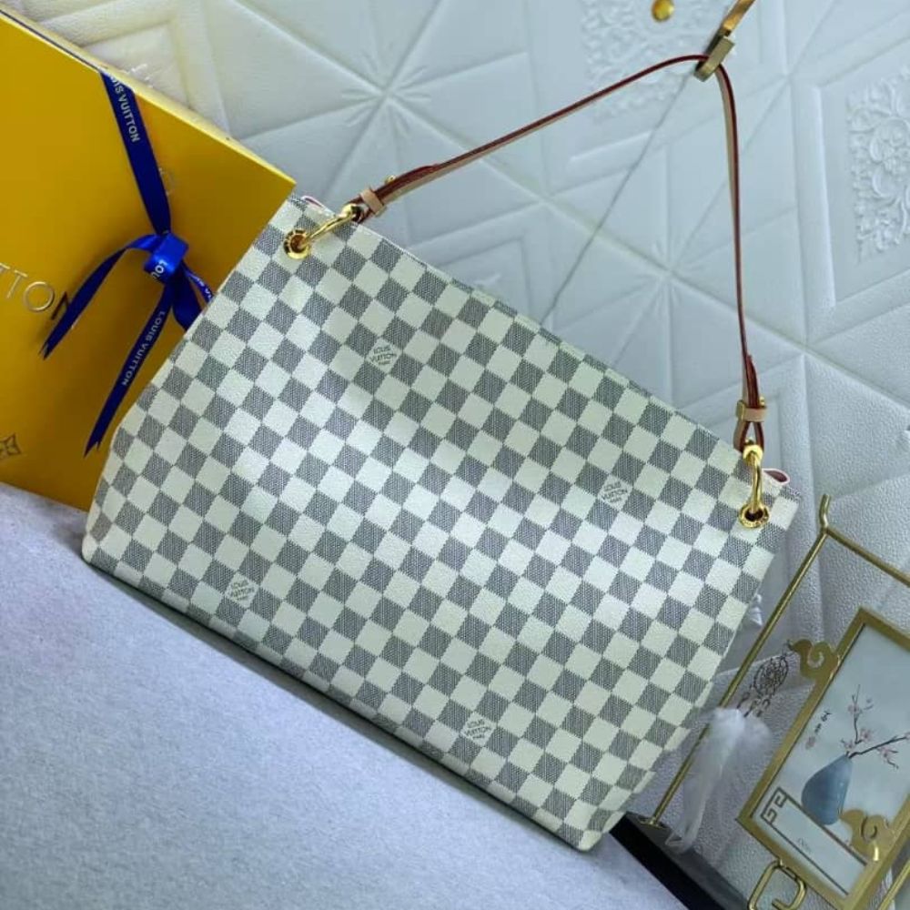 The Graceful PM hobo in fresh Damier Azur canvas is a lightweight, roomy bag to carry every day. Natural cowhide leather detailing and golden hardware add a refined touch. The body-friendly design combines with a supple, flat handle for stylish and comfortable over-the-shoulder wear. The magnetic closure and zipped inside pocket keep belongings secure.