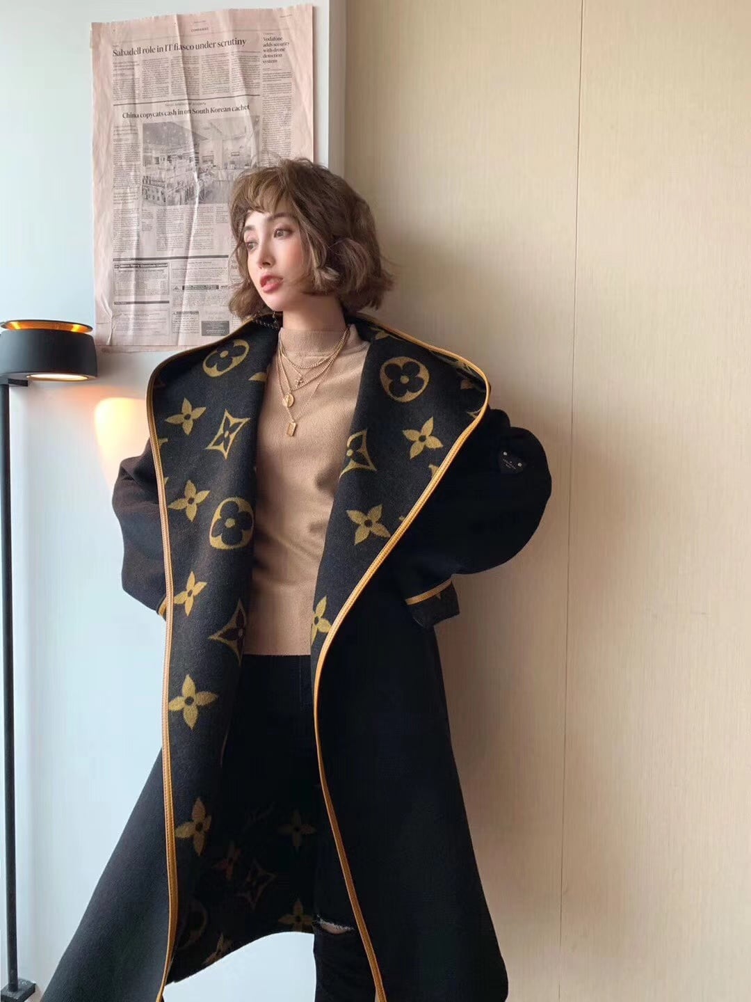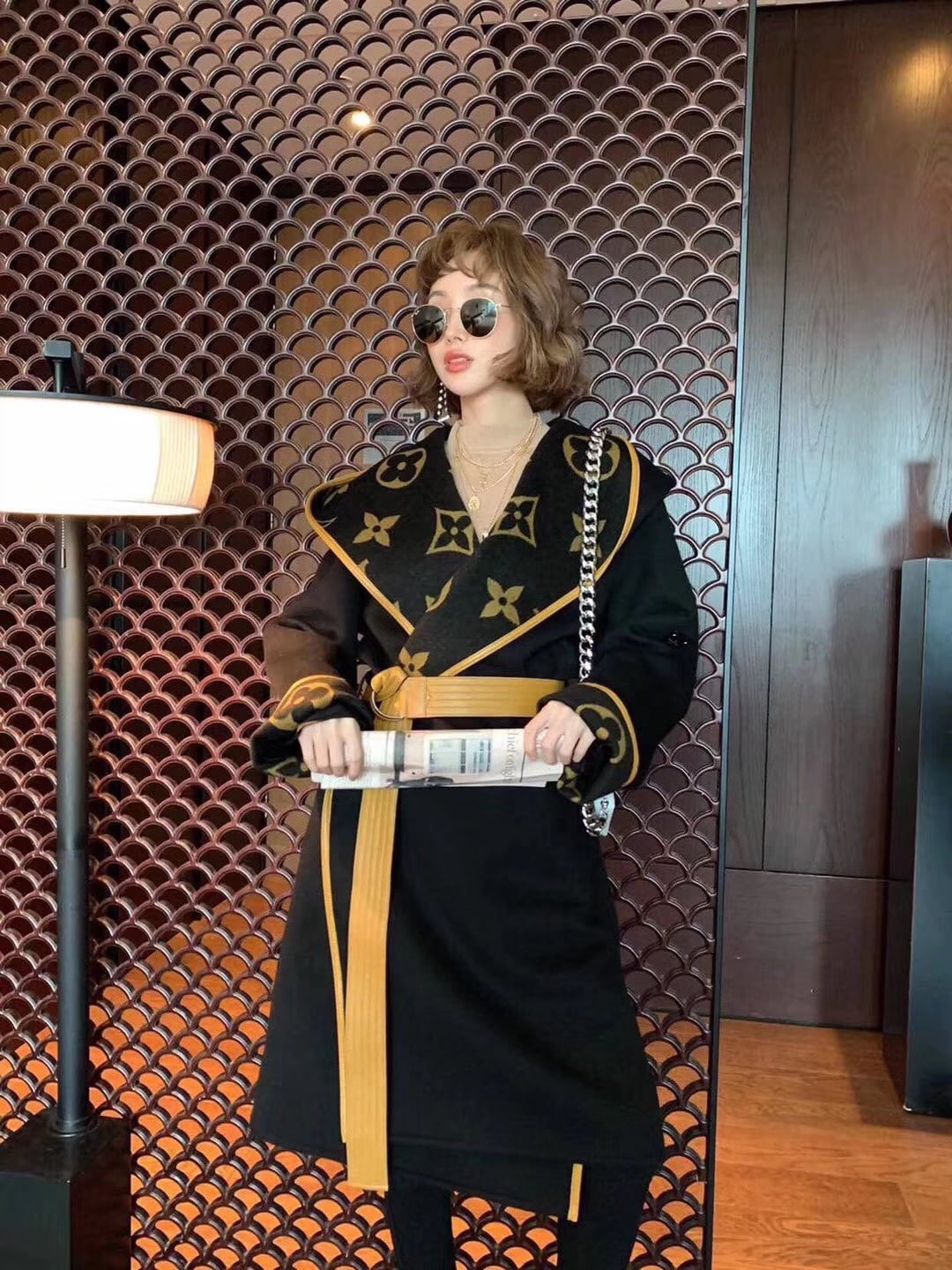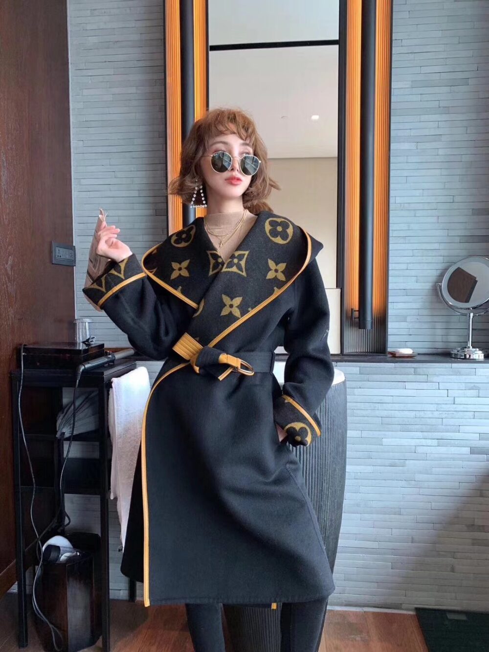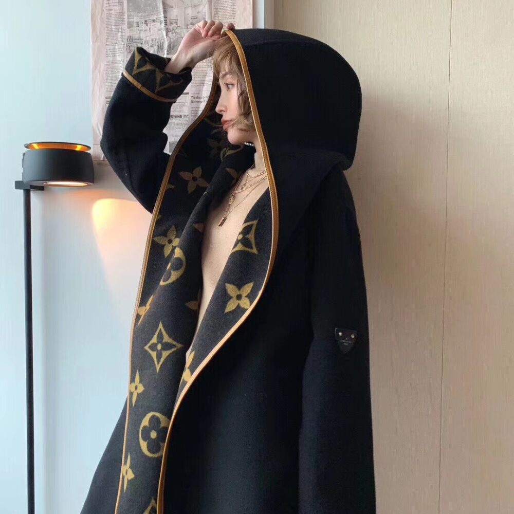 Louis Vuitton Hooded Wrap Coat Monogram Wool/ Black