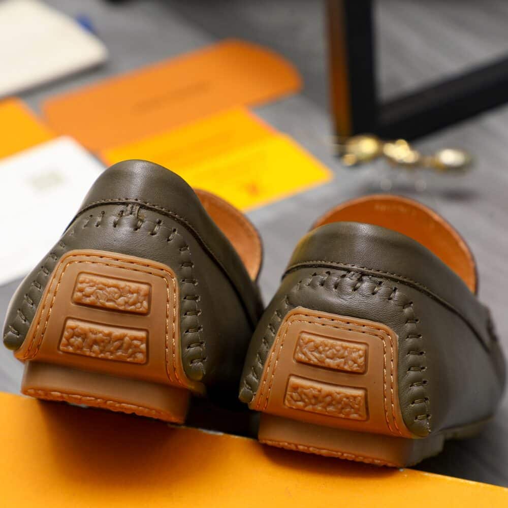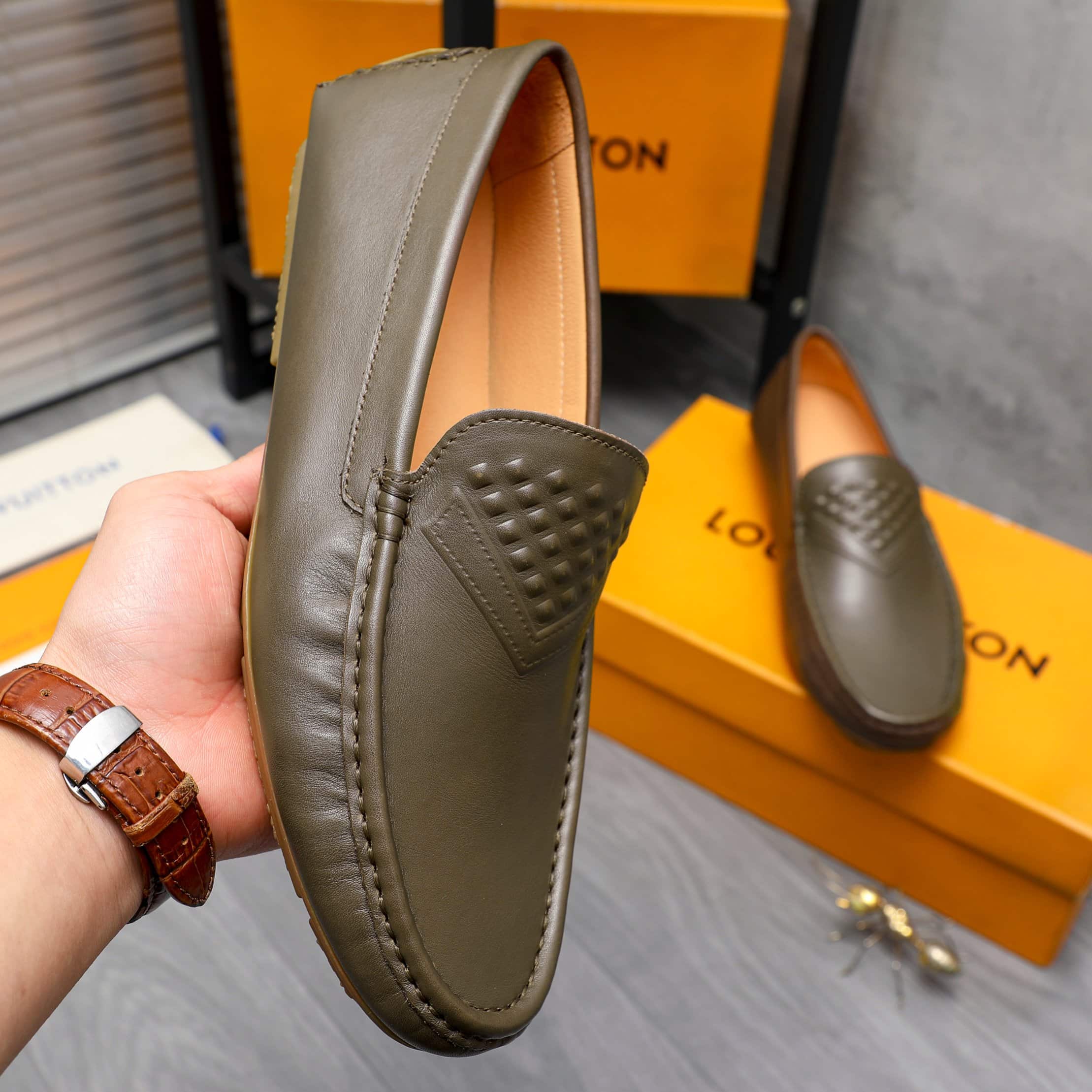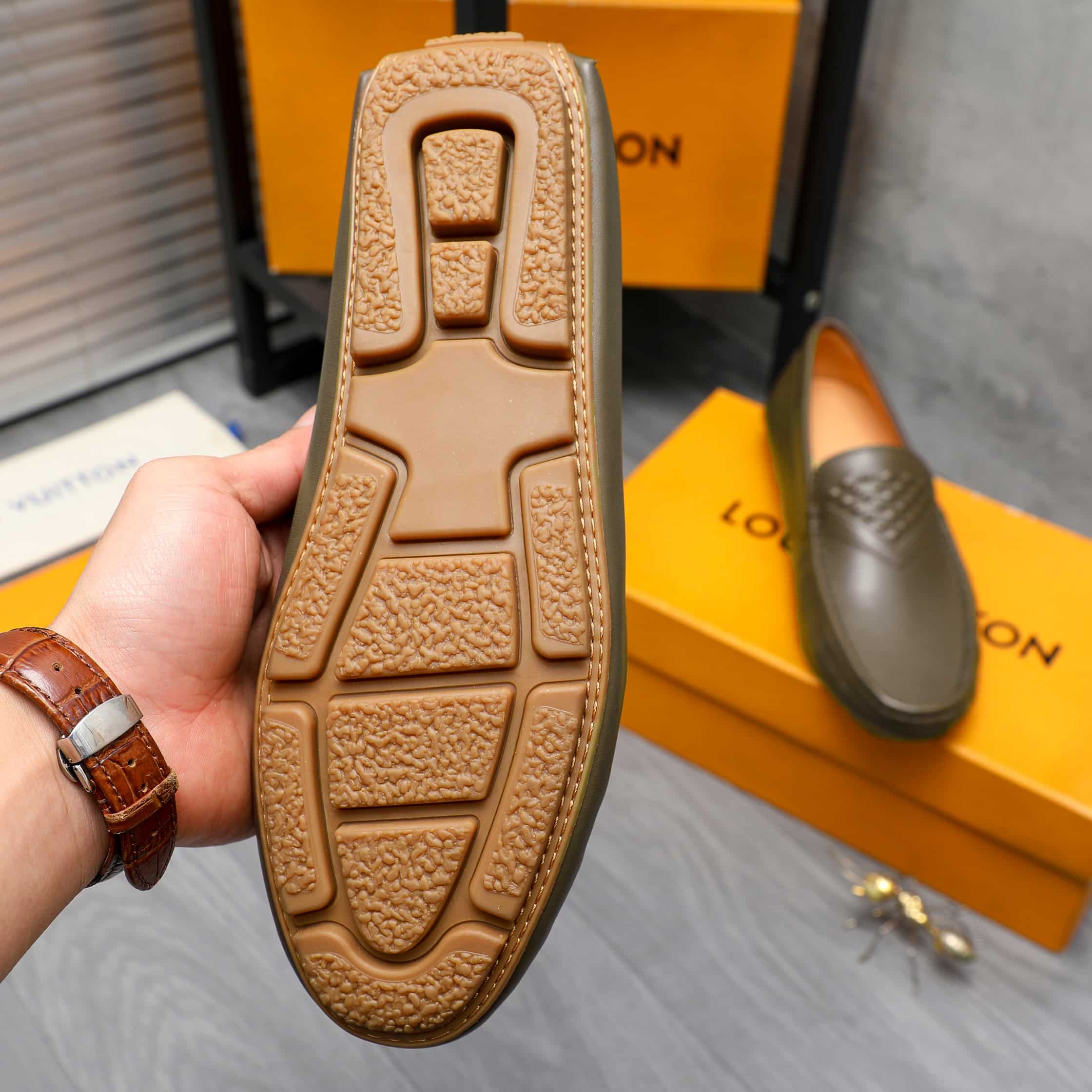 LOUIS VUITTON LOAFERS EMBOSSED LEATHER MOCCASIN DARK GREEN