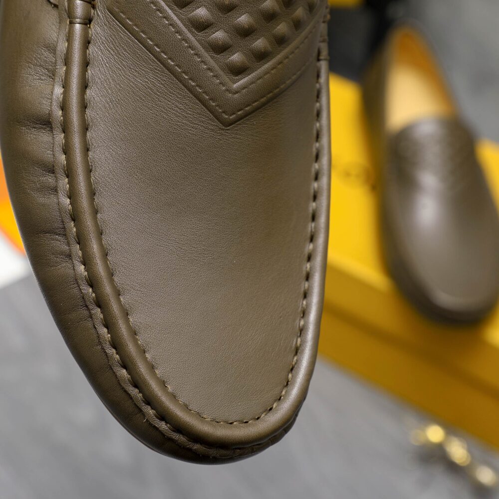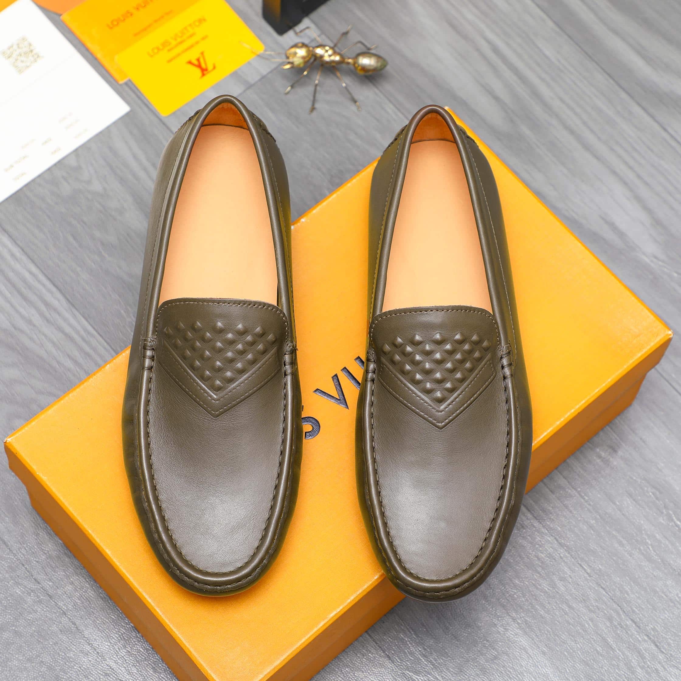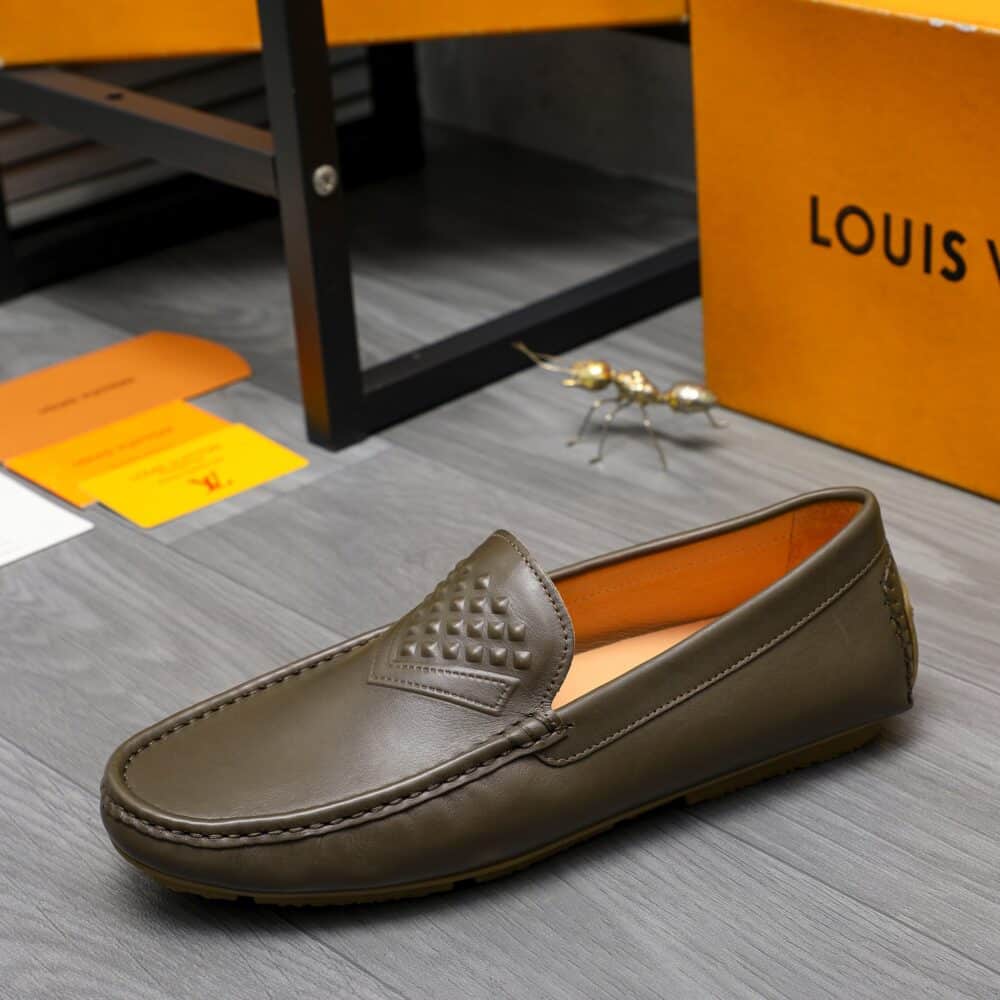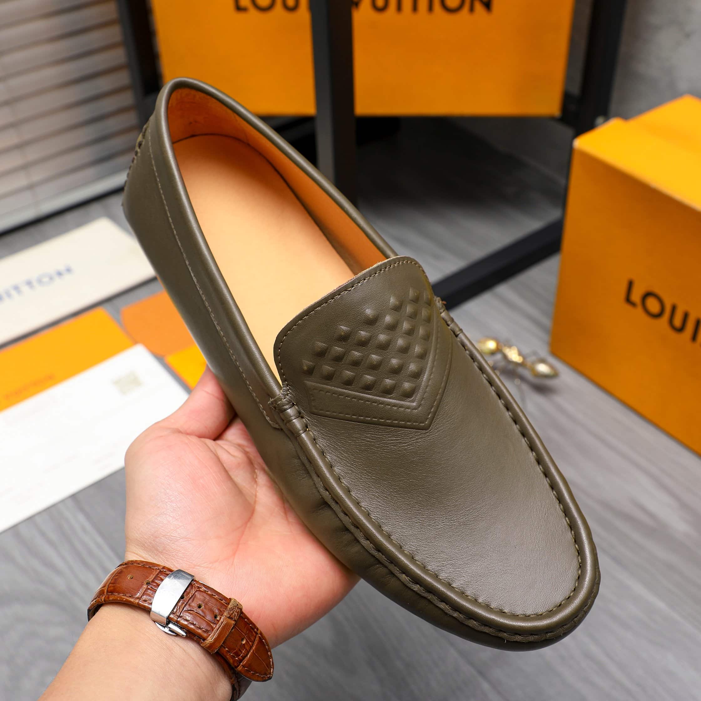 LOUIS VUITTON LOAFERS EMBOSSED LEATHER MOCCASIN DARK GREEN