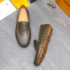 LOUIS VUITTON LOAFERS EMBOSSED LEATHER MOCCASIN DARK GREEN