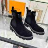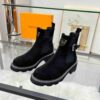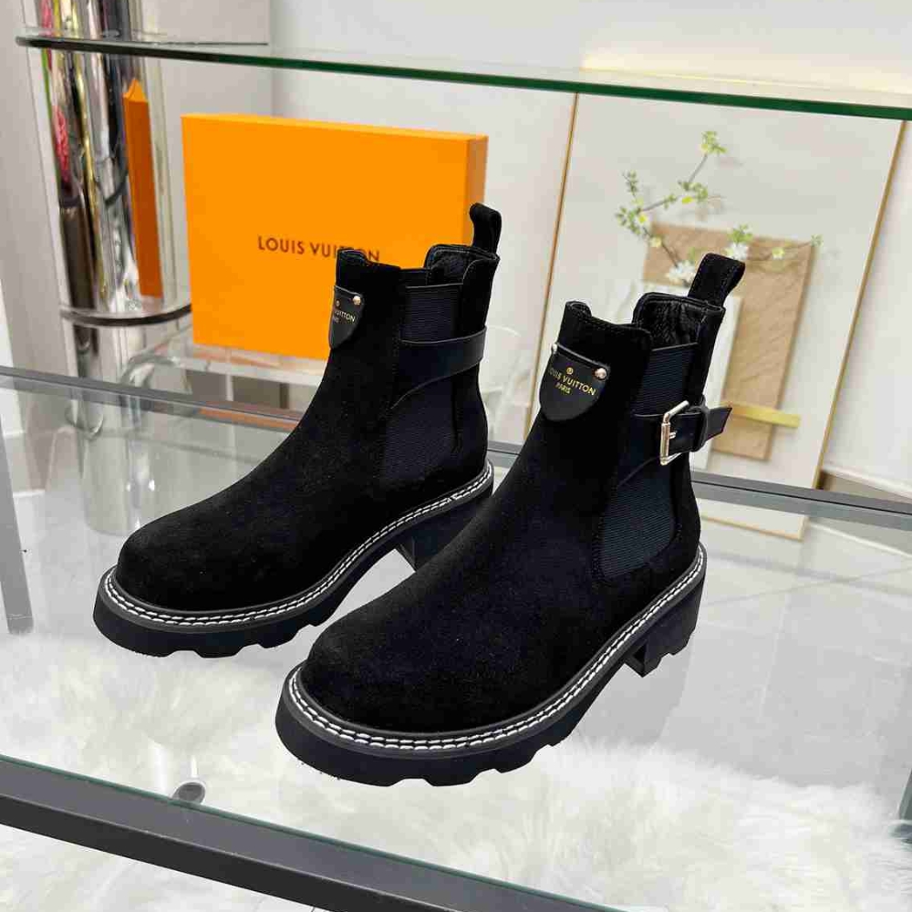 Crafted from velvety suede leather, the LV Beaubourg ankle boot nods to a Chelsea boot with its elastic side panels, while the leather belt detail references the ready-to-wear collection. Signed with a Louis Vuitton-embossed leather label, this easy-to-wear style comes on a sturdy heel and chunky yet lightweight micro outsole.