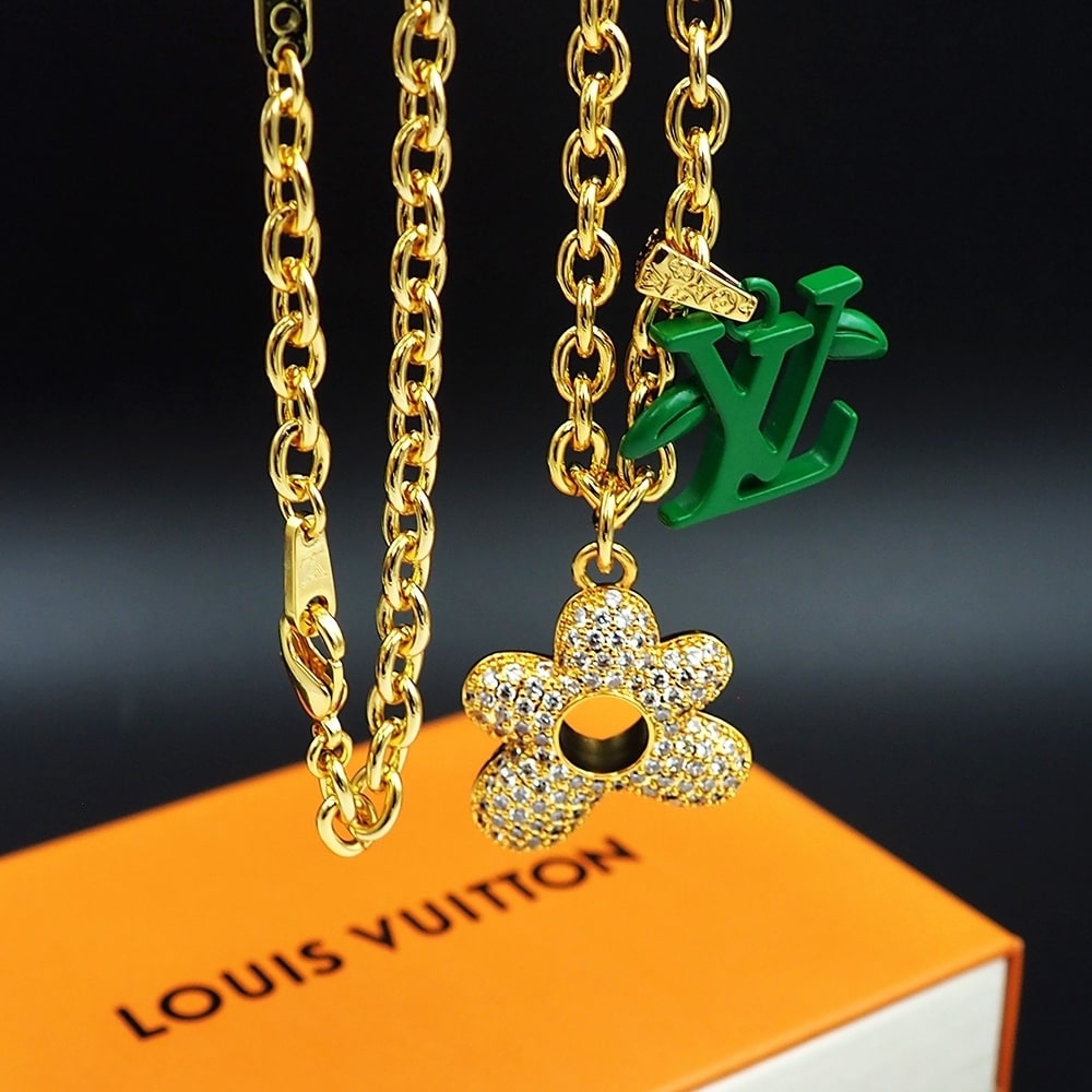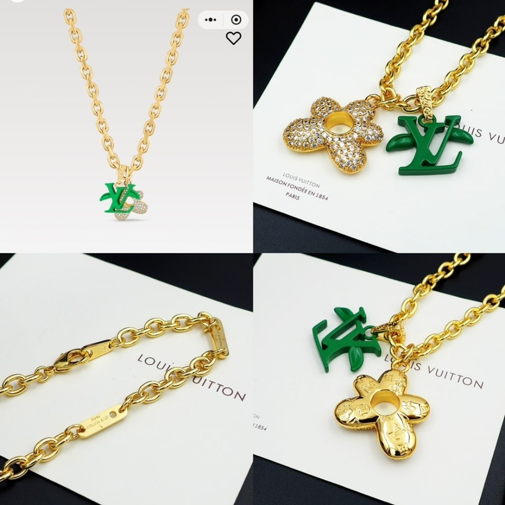 Louis Vuitton Lv Blooming Necklace Gold With Green