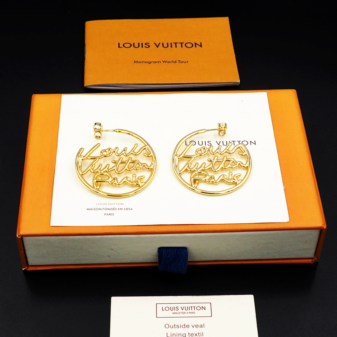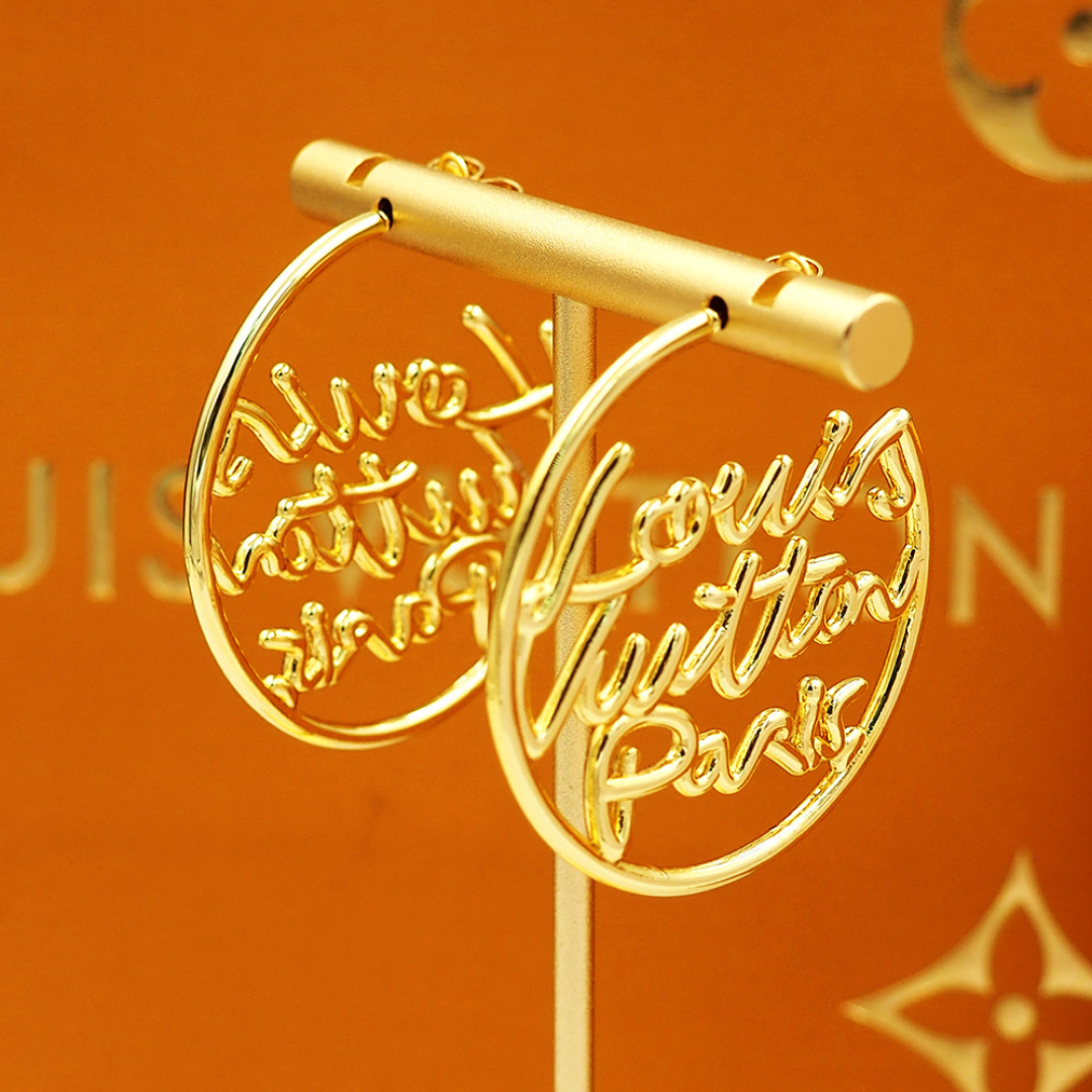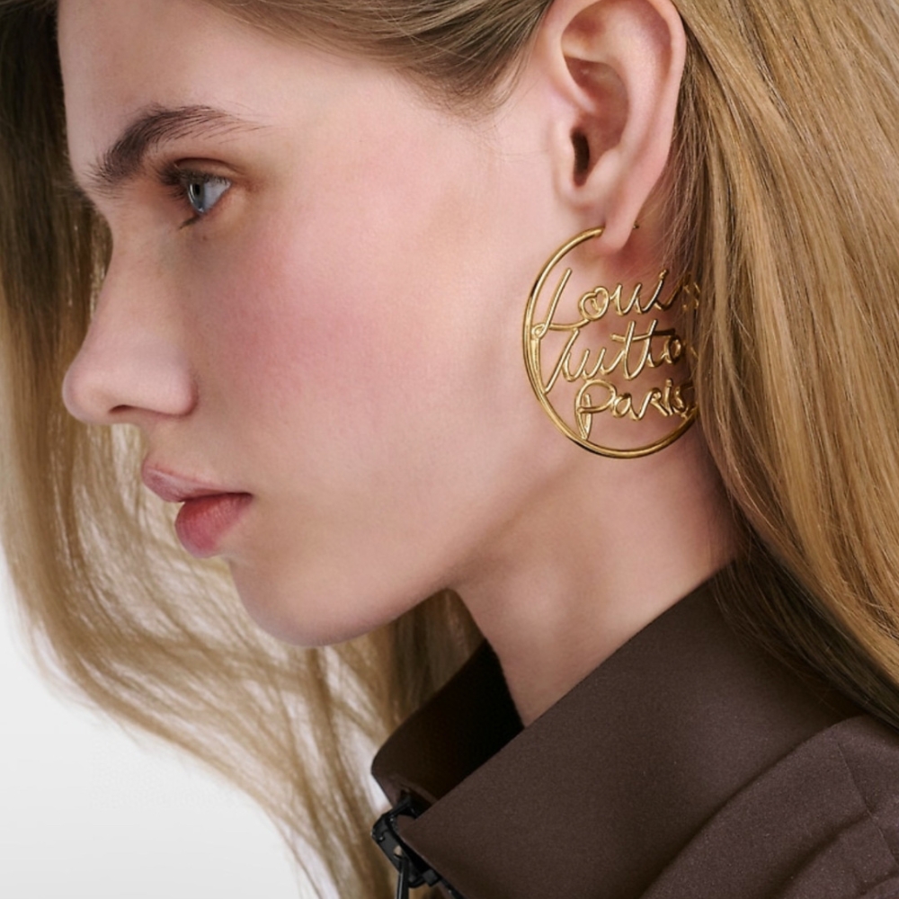 Louis Vuitton LV Script Earrings / Gold metal / Fit Daily Essentials / Party Jewelry