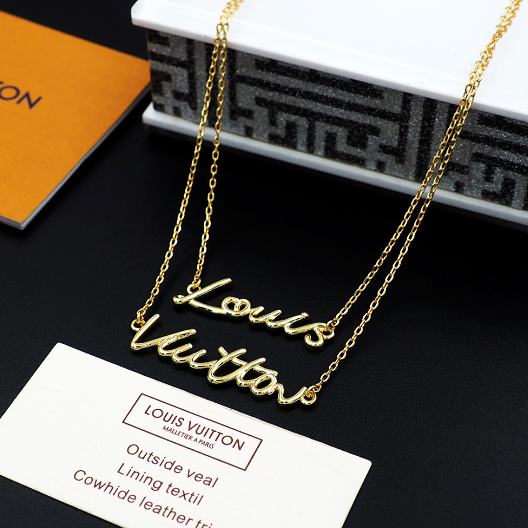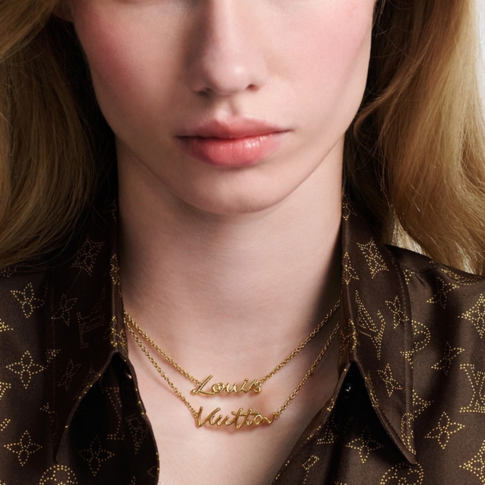 Louis Vuitton LV Script Necklace / Gold metal / Fit Daily Essentials / Party Jewelry