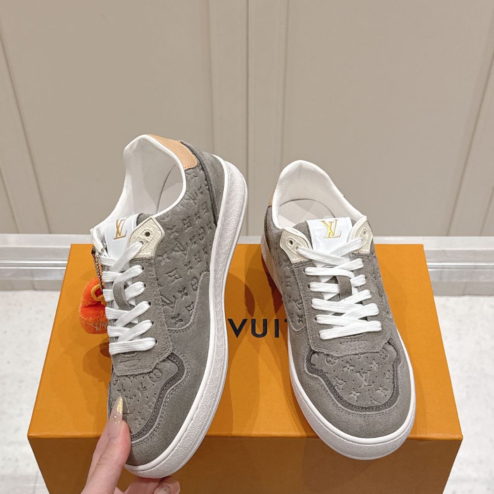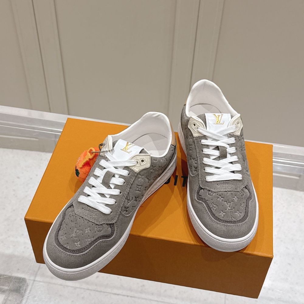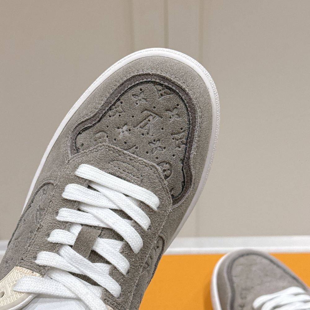 The vintage-inspired design of the LV Stadium sneaker is complemented by leather, which is partially debossed with the Mini Monogram pattern. This model is trimmed at the back with natural leather, referencing Louis Vuitton Leather Goods, which is hot-stamped with the House signature. This model is finished with a lightweight rubber outsole.