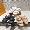The LV Venice mule is a casual-chic style made of grained leather, which is debossed with the iconic Monogram pattern. The upper features two adjustable straps with large, angular buckles. A padded footbed and supple micro outsole make this model extremely light and comfortable to wear.