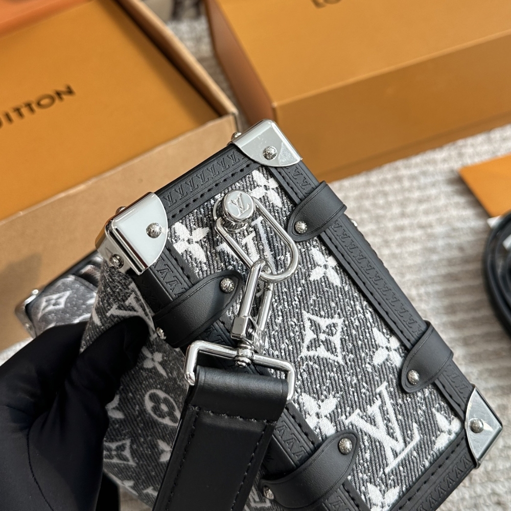 The Louis Vuitton Side Trunk MM in Washed Gray Monogram Denim is a contemporary tribute to the Maison’s legendary trunk-making heritage. The bag features a signature S-lock and zipper closure, ensuring your essentials like a smartphone, Zippy wallet, and keys remain secure. Designed for ultimate versatility, it includes both a removable leather top handle and an adjustable shoulder strap, allowing it to transition seamlessly from a chic handheld bag to a modern crossbody.
