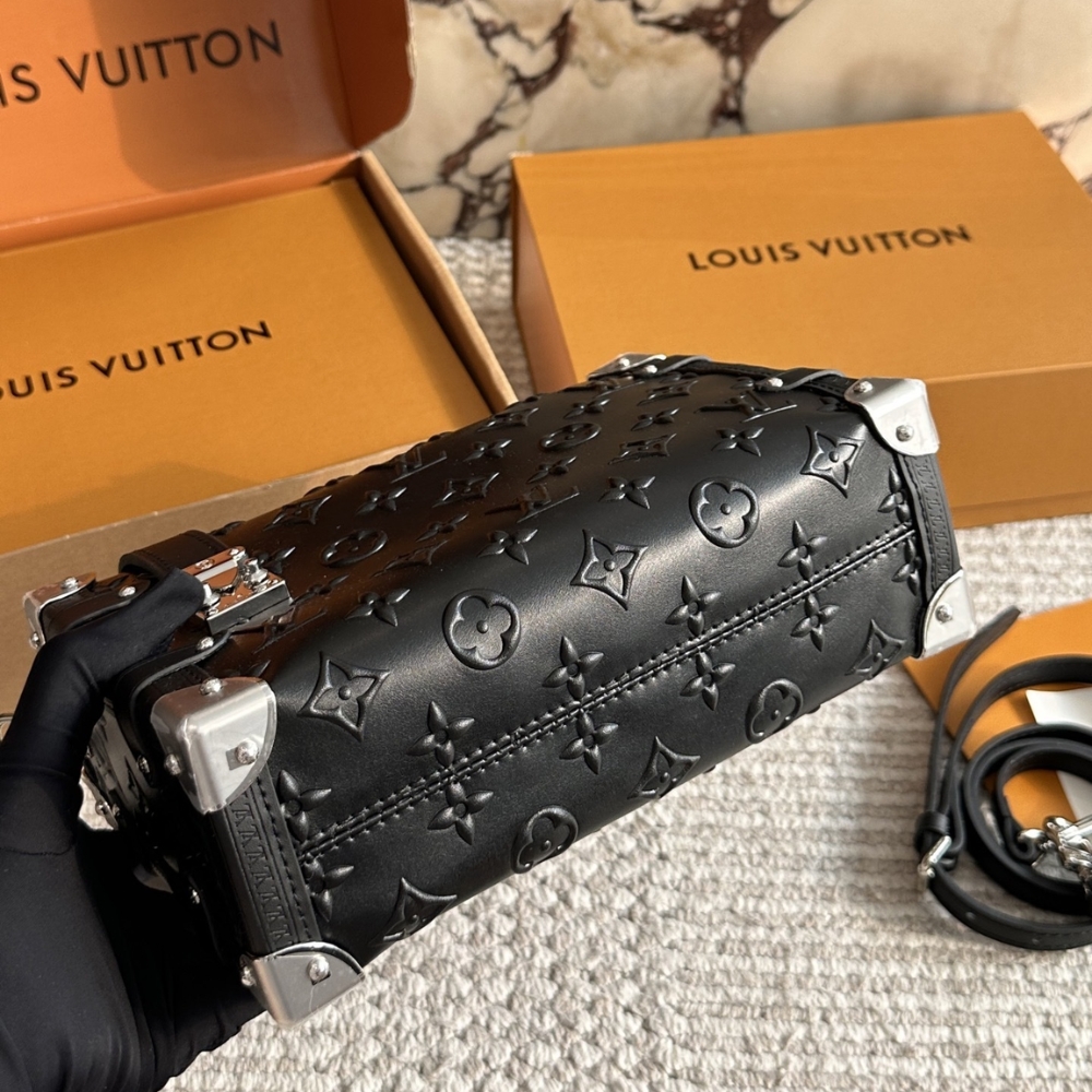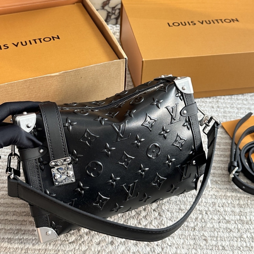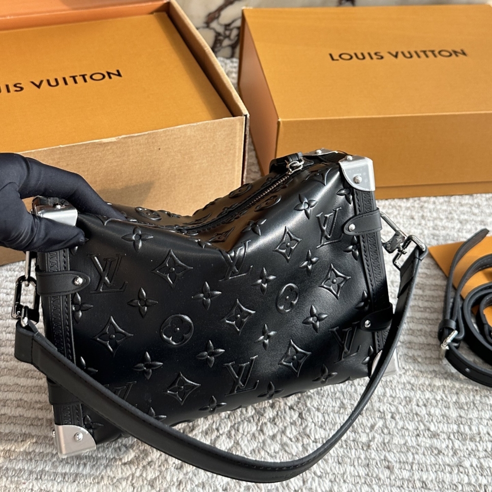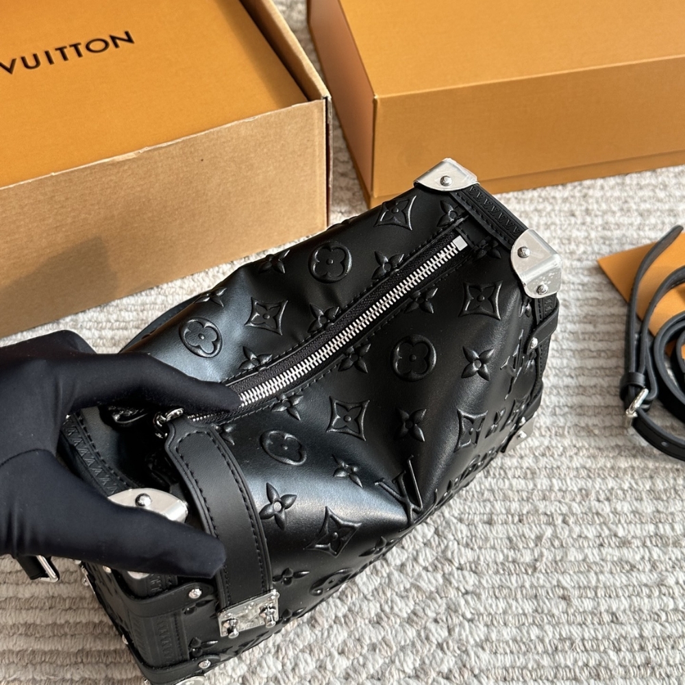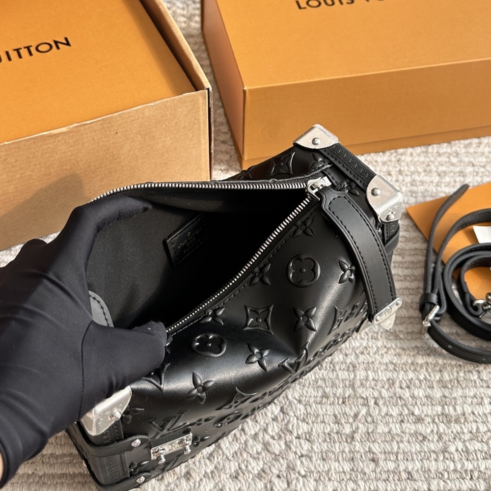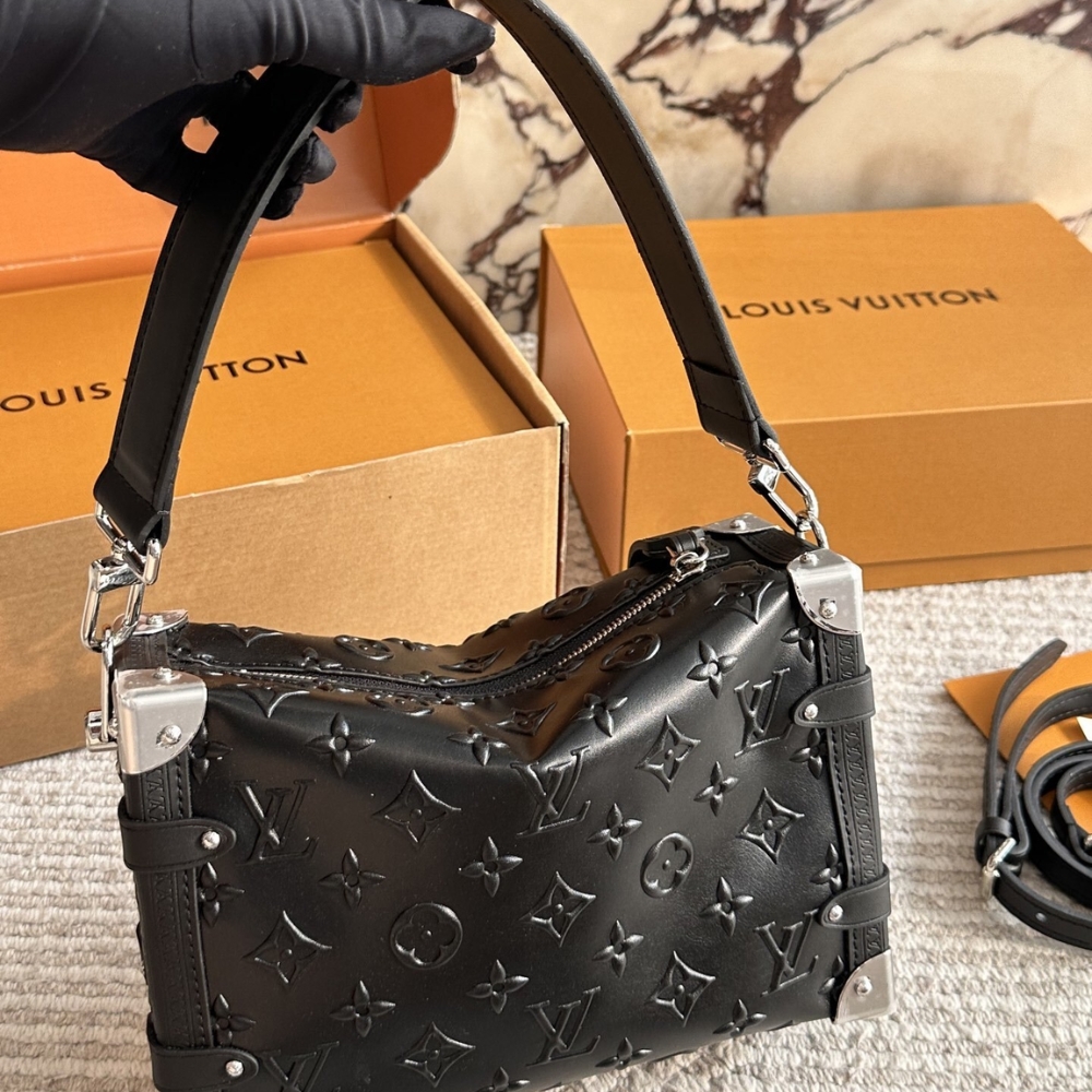 Designed by Artistic Director Nicolas Ghesquière, the elegant Side Trunk MM bag is a tribute to the Maison’s trunk-making heritage. Part of the Monogram Bold collection, this new version is crafted from embossed with the Monogram pattern, combined with metal corner accents and a matching S-lock clasp. The bag features a detachable long strap, allowing for versatile styling options.