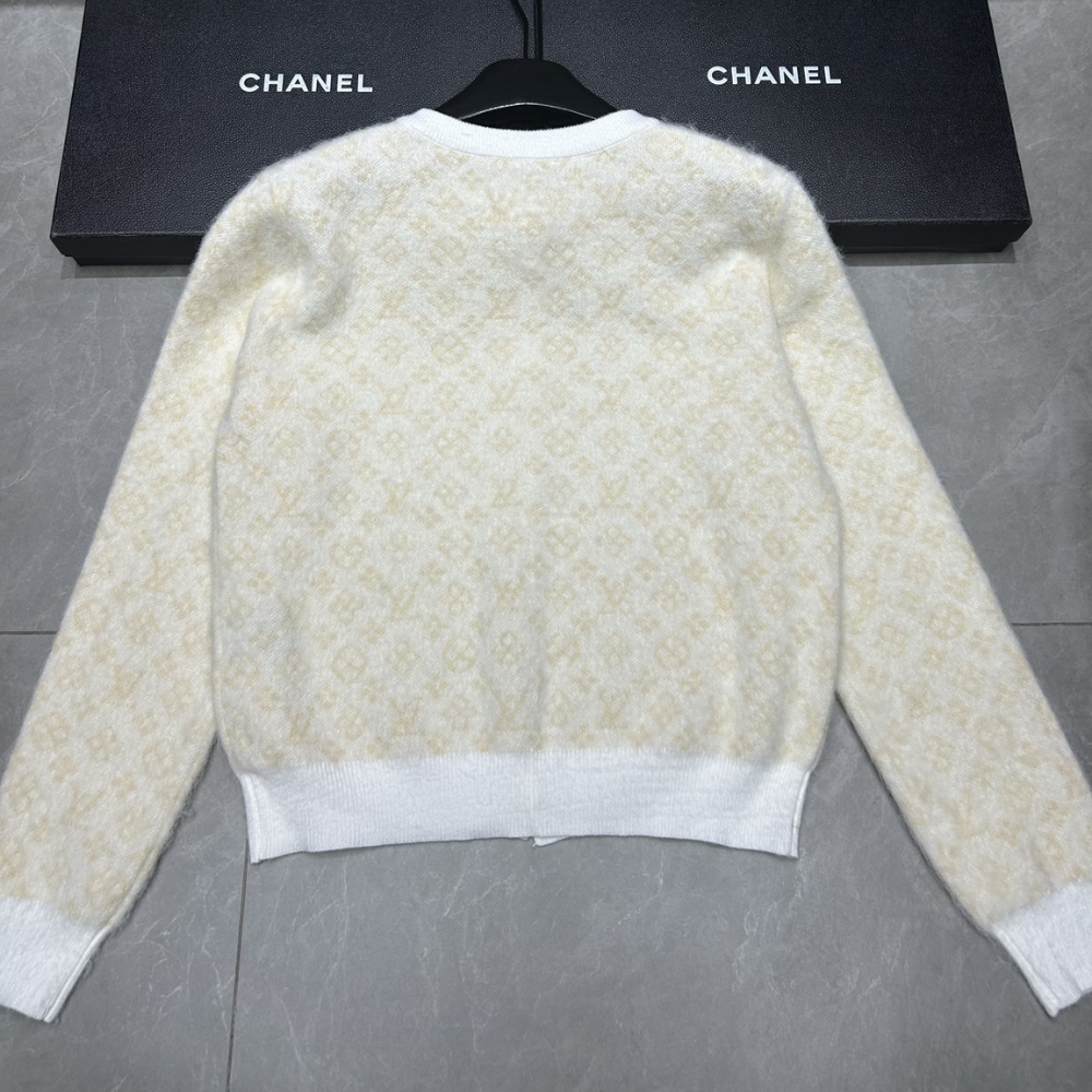Louis Vuitton Monogram Brushed Knit Cardigan Beige / Wool, Cashmere, Polyamide / Daily Outfits / Elegant style