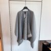 The Louis Vuitton Monogram Cape in grey and white is a sophisticated layering piece that features the House’s iconic Monogram motif in a subtle, contrasting weave. Crafted from a blend that typically includes wool and cashmere, this cape offers a soft, luxurious feel and exceptional warmth for colder seasons. The design is characterized by its elegant, oversized silhouette and draped open front, making it a versatile addition to both casual and formal ensembles. Its jacquard-woven pattern is visible on both sides, and it is finished with a refined Louis Vuitton signature along the hem for a signature touch of luxury.