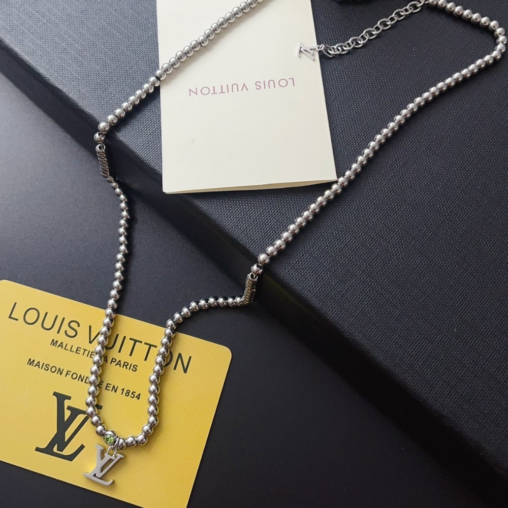 Louis Vuitton Nano Beads Necklace In Silver Tone