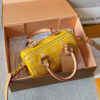 The Louis Vuitton Nano Speedy in yellow is a miniature version of the House’s iconic travel bag. This compact design is crafted from Monogram coated canvas and features leather trims, and a secure zipper closure. It provides a surprising amount of storage for essentials such as a smartphone, keys, and a card holder. The bag is highly versatile, including a removable and adjustable shoulder strap that allows for hand, shoulder, or crossbody carry.