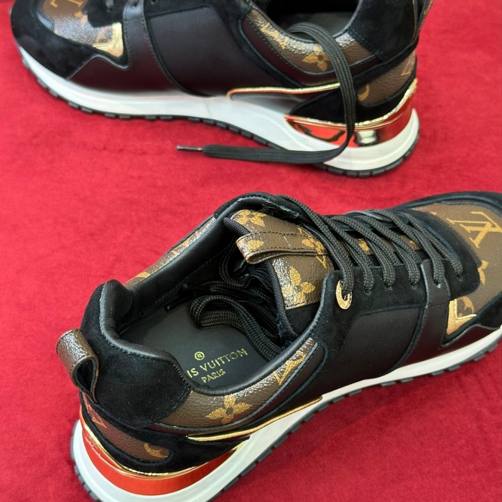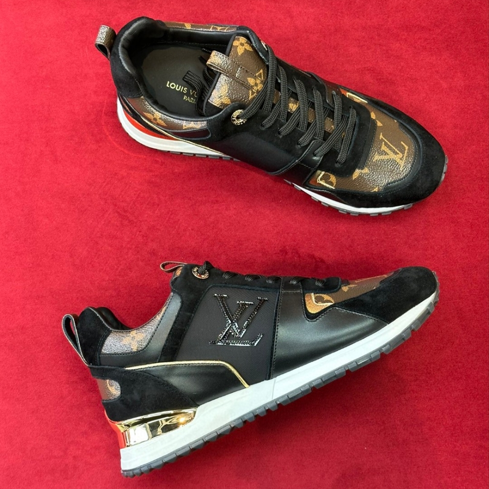 The Neo Run Away sneaker revisits the emblematic Run Away line. This version comes in a mix of materials, including Monogram canvas, and sports an LV Circle logo on the side. The new design retains the line’s wedge-shaped outsole and hidden footbed, as well as its gold-tone spoiler, which is engraved with the Louis Vuitton signature.