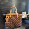 The Louis Vuitton Neverfull MM Monogram Origine Ebène is a special edition released to celebrate the 130th anniversary of the iconic Monogram motif. It features the classic brown Monogram coated canvas with leather trim and unique archival-inspired details, such as a celebratory internal leather label. A spacious interior that includes a removable zipped pouch and a special anniversary address tag. This collector’s piece combines heritage design with daily functionality, featuring signature side laces to adjust the bag’s shape and slim handles for comfortable shoulder carry.