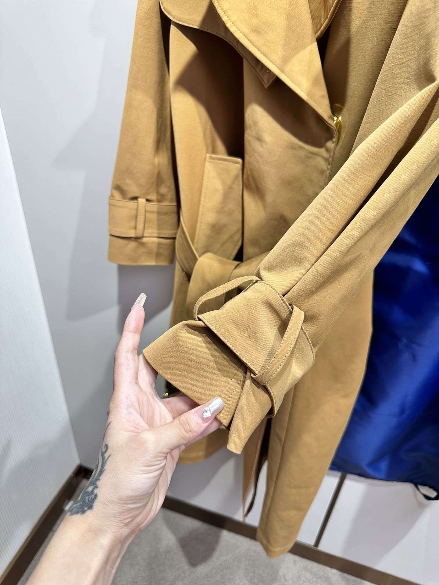 - This timeless trench is crafted from gabardine in a classic sandy shade for an effortlessly elegant look.