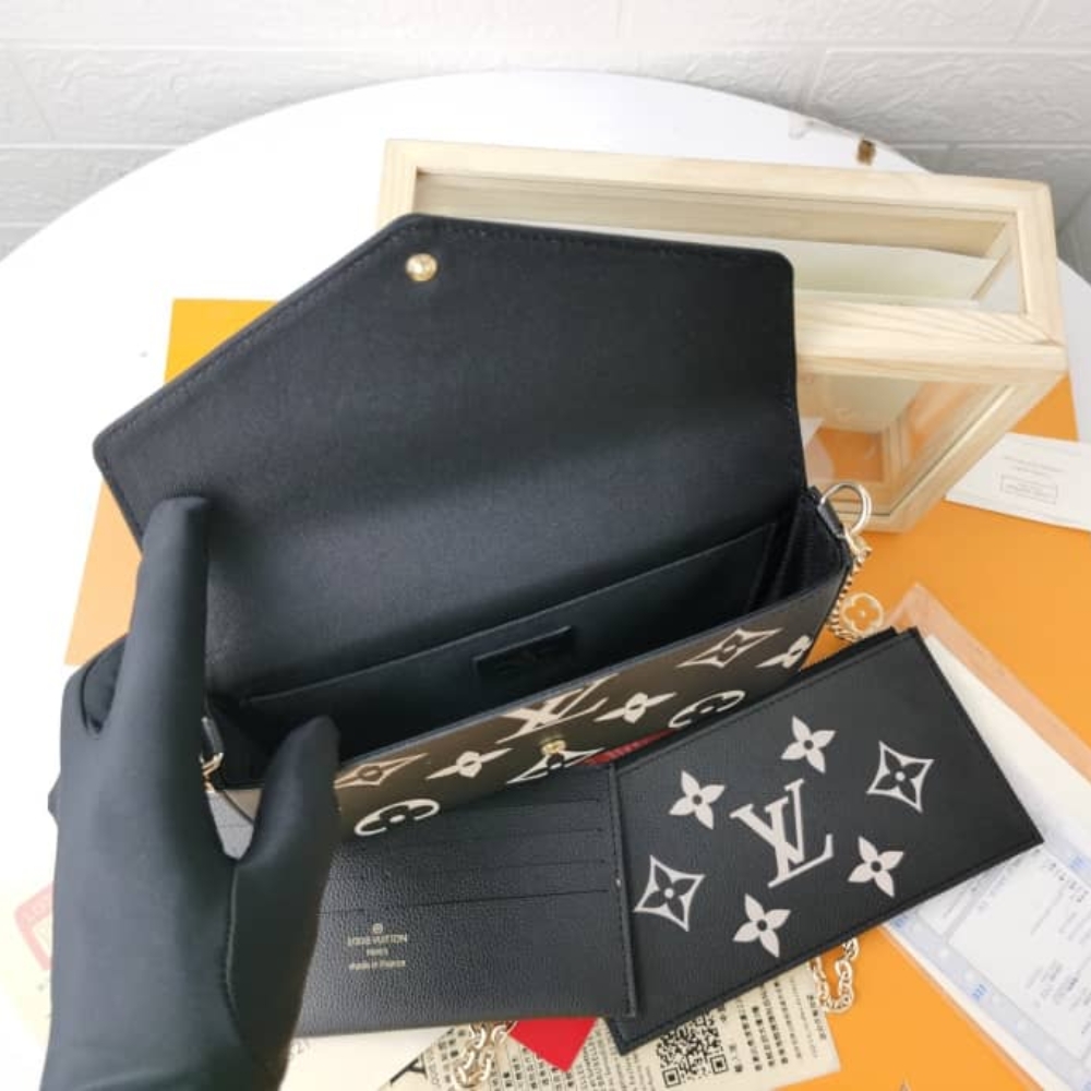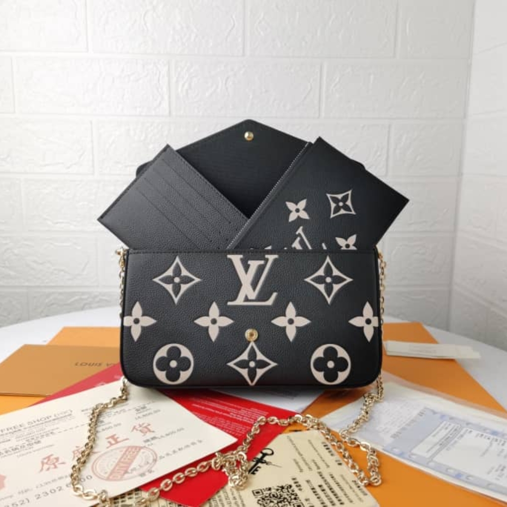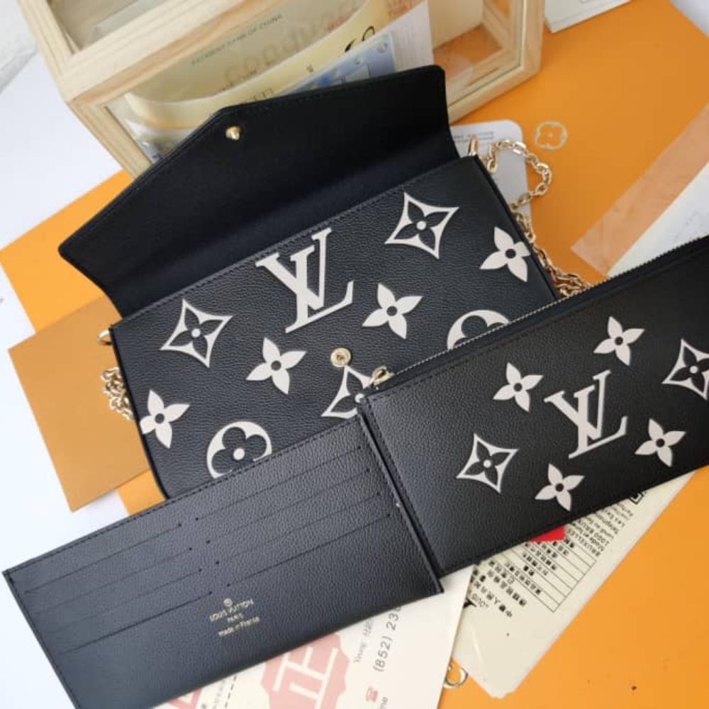 The Pochette Félicie is crafted from supple Monogram Empreinte leather, embossed with Louis Vuitton’s iconic Monogram pattern. The bicolor palette brings added refinement to this elegant and versatile design, which features a removable chain, enabling it to be carried on the shoulder or as a clutch, as well as two removable pockets.