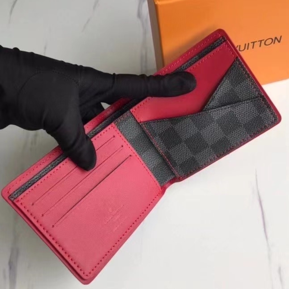 LOUIS VUITTON SLENDER WALLET DAMIER GRAPHITE CANVAS BLACK AND RED 11CM N63260