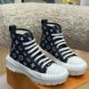 Lacquered eyelets - LV Circle rubber patch on the tongue.