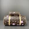 Projecting a fresh attitude in a rounded lateral silhouette, the Papillon handbag is playfully adorned with a miniature version looped through the hardware. It is crafted from the House’s iconic Monogram coated canvas with emblematic natural leather trims, while Cherry Blossom motifs from the re-edition of the Louis Vuitton x Murakami collection add a joyful statement, and studded straps complete the look with a hint of rebellion.
