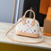 Originally inspired by a 1930s Art Deco design, this edition of the Alma BB has a celebratory spirit in the Louis Vuitton x Murakami collection’s multicolored Monogram coated canvas, which draws on the Japanese artist’s playful palette. The House’s natural leather adds an emblematic touch to the refined Toron top handles, the bottom, the removable strap, and the exclusive LV x TM keybell.