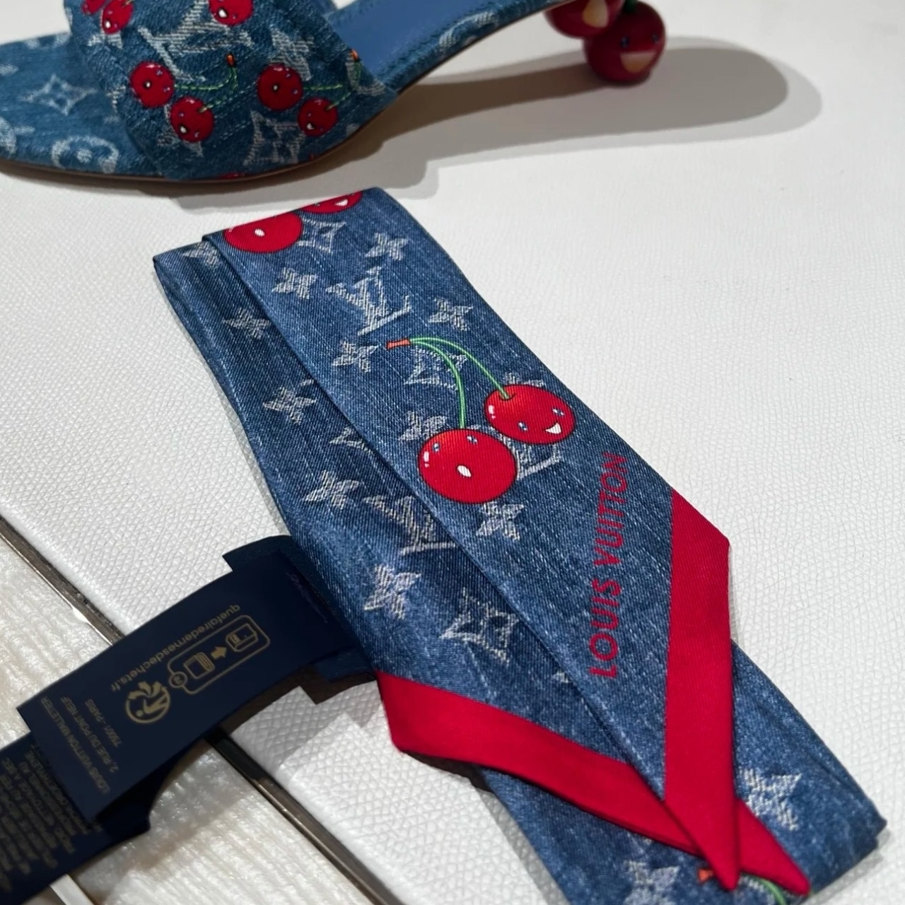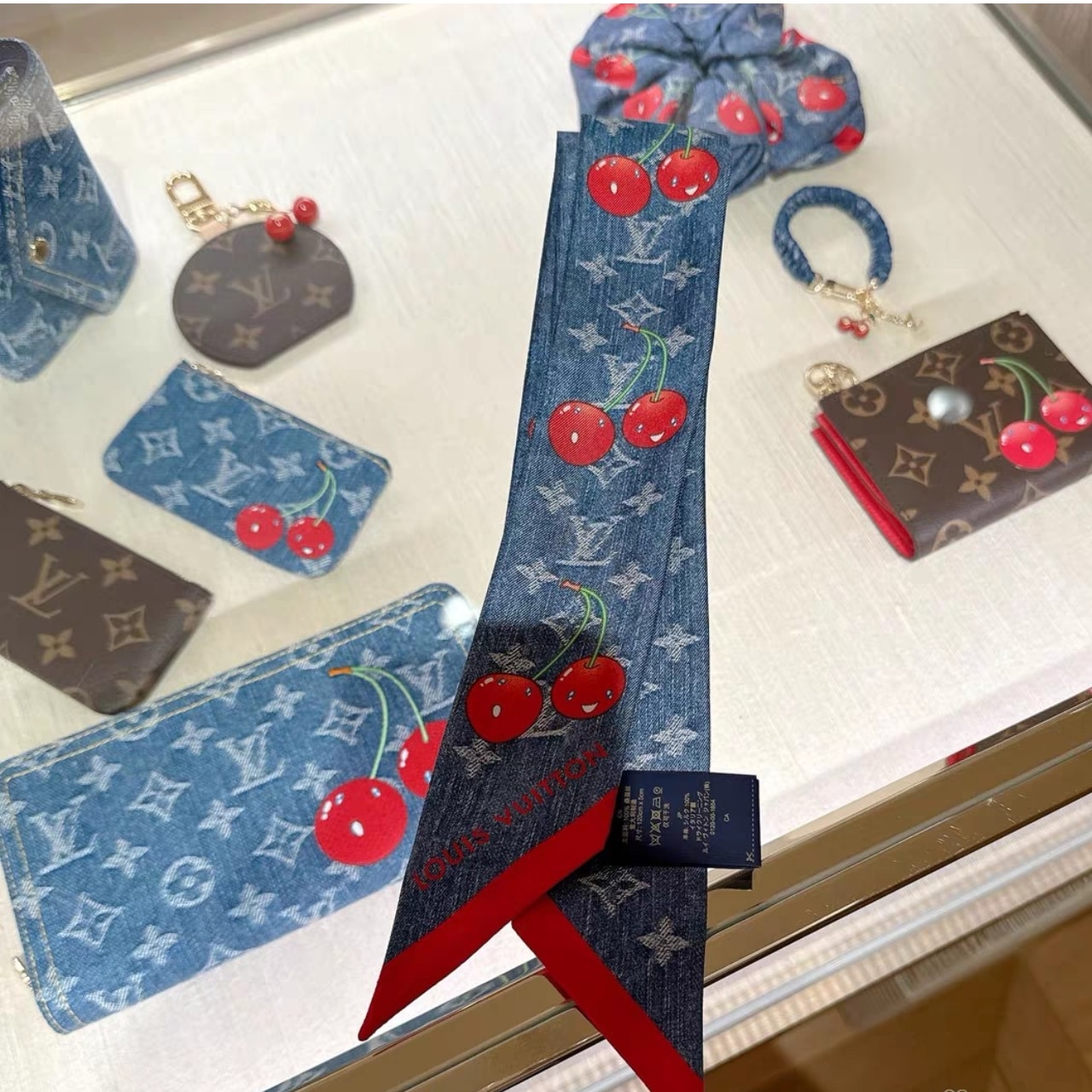 Louis Vuitton x Takashi Murakami Denim Cerise Bandeau Denim Blue 120Cm / 47.2 Inches