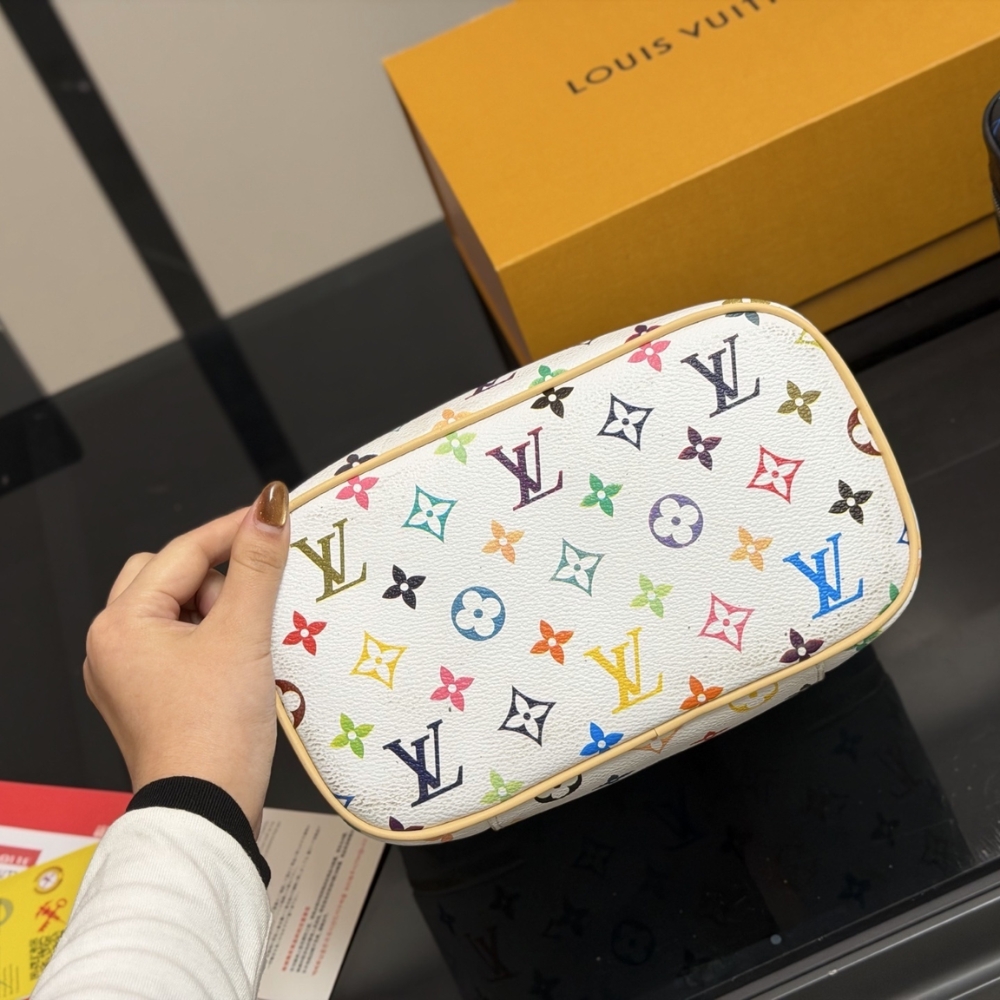 Takashi Murakami’s Monogram Multicolore coated canvas brings a joyful touch to the Nice BB vanity case. Lined in cream-colored washable textile, the interior includes a zipped pocket under the top flap for small essentials. With its double zip closure, this compact piece is both elegant and practical – ideal for beauty on the go.