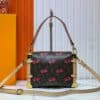 Reflecting the playful spirit of the celebratory re-edition of the Louis Vuitton x Murakami collection, the Side Trunk MM is crafted from classic Monogram coated canvas adorned with luscious cherry motifs in the Japanese artist’s exuberant aesthetic. Leather trims and golden hardware pay homage to the House’s travel heritage, including riveted corners and an S-lock closure.