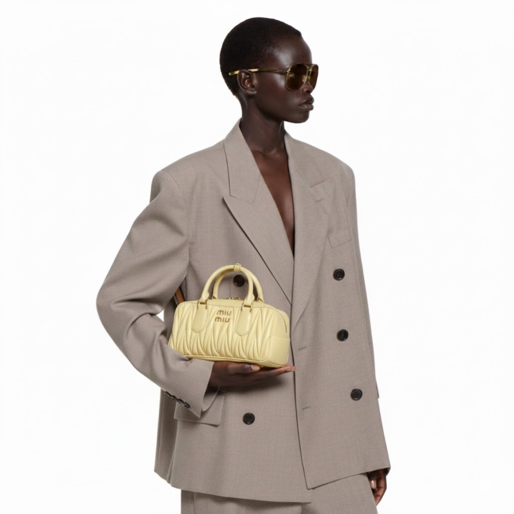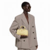 Precious matelassé workmanship revisits the classic silhouette of the top-handle bag thanks to its three-dimensional, textured, and extremely sophisticated effect. The lettering logo on the front that echoes different metallic finishes of the hardware stands out against the artisan motif with an iconic and immediately recognizable touch. The dynamic and elegant lines and the adjustable, detachable shoulder strap contribute to the versatile, functional and modern design of the bag.