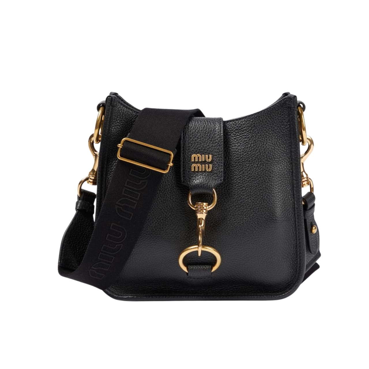 MIU MIU CARABINER DETAIL SHOULDER BAG BLACK 21CM
