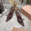 The bow with logo adds a distinctive touch to the feminine line of these slingback pumps seen on the runway, defined by an elegant heel and sensuous attitude.