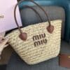 Miu Miu Palmetto Tote Bag Raffia In Tan 30cm 5BG206 2DDH F0A5T