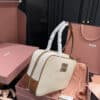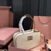 MiuMiu Beau Canvas Bag Beige And Brandy 34Cm 5BB163 ACRN F062F V OOO