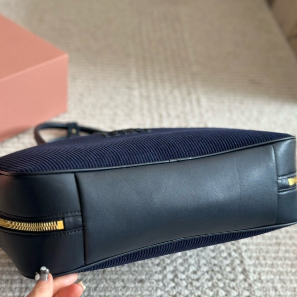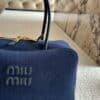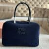 MiuMiu Beau Corduroy Top Handle Bag Navy 35Cm 5BB163 2F81 F0124 V OOO