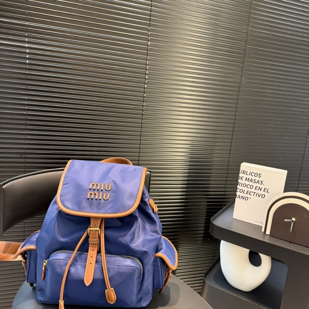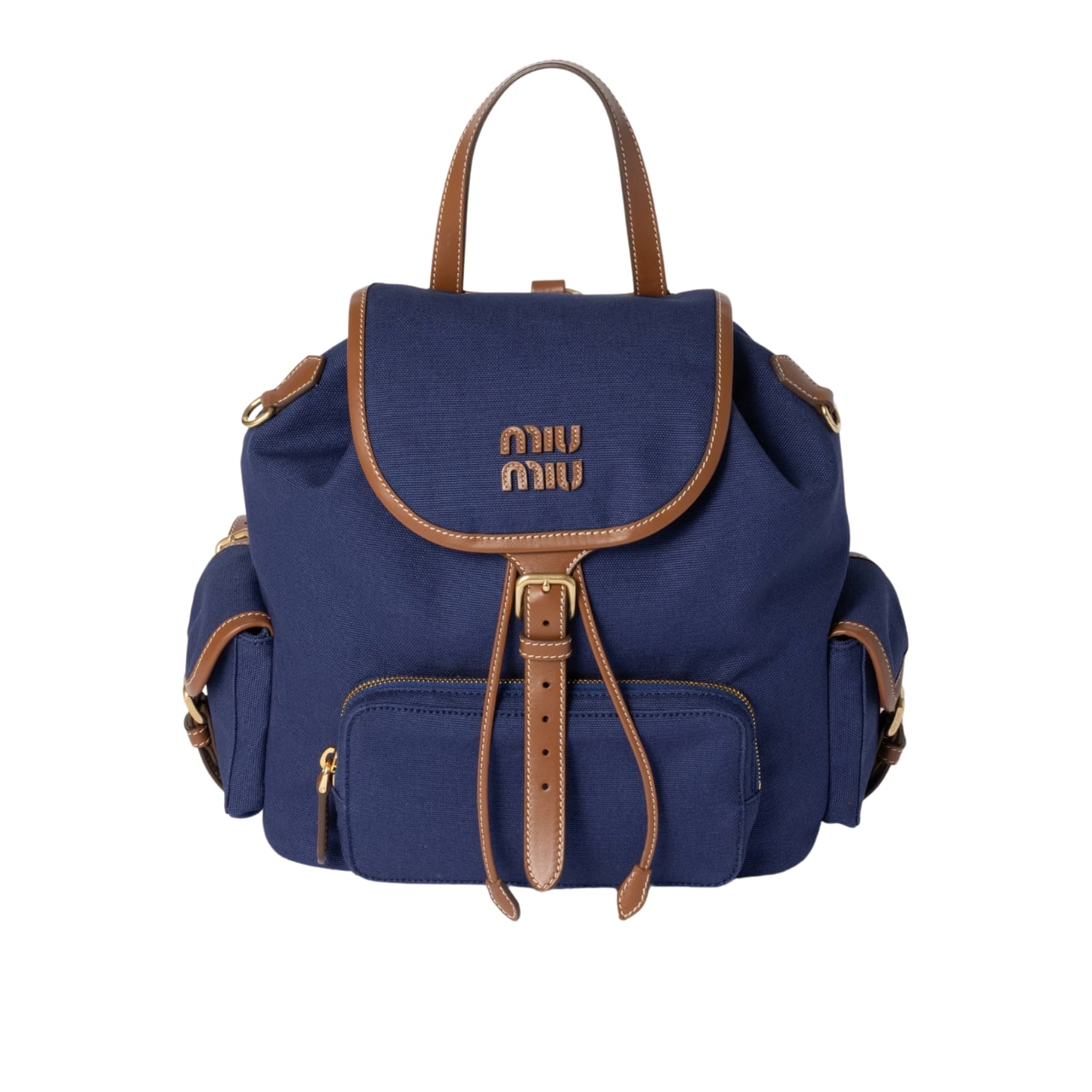MiuMiu Canvas Backpack Cornflower Blue And Brandy 27Cm 5BZ042 2IBQ F0TQF V OOO