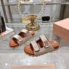 Miumiu Canvas Slides Beige And Brandy 5Xx658 Q1D F062F F 010